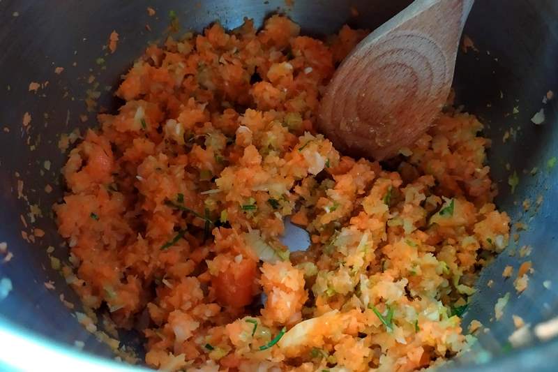 Pulite e lavate il sedano, carota, cipolla, e tagliateli a cubetti;