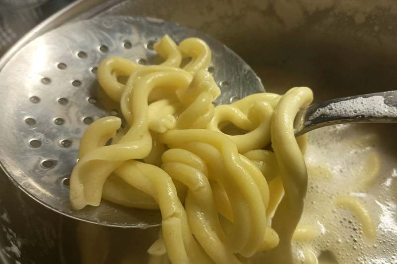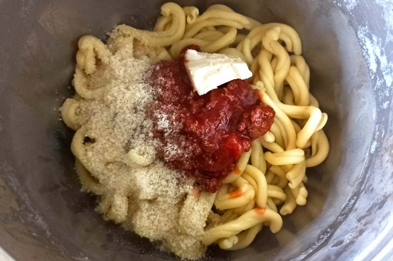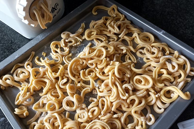 Impastate per 5 minuti con la Pastamatic, ed avviate la trafilatura con la trafila chiamata Pasta del contadino;