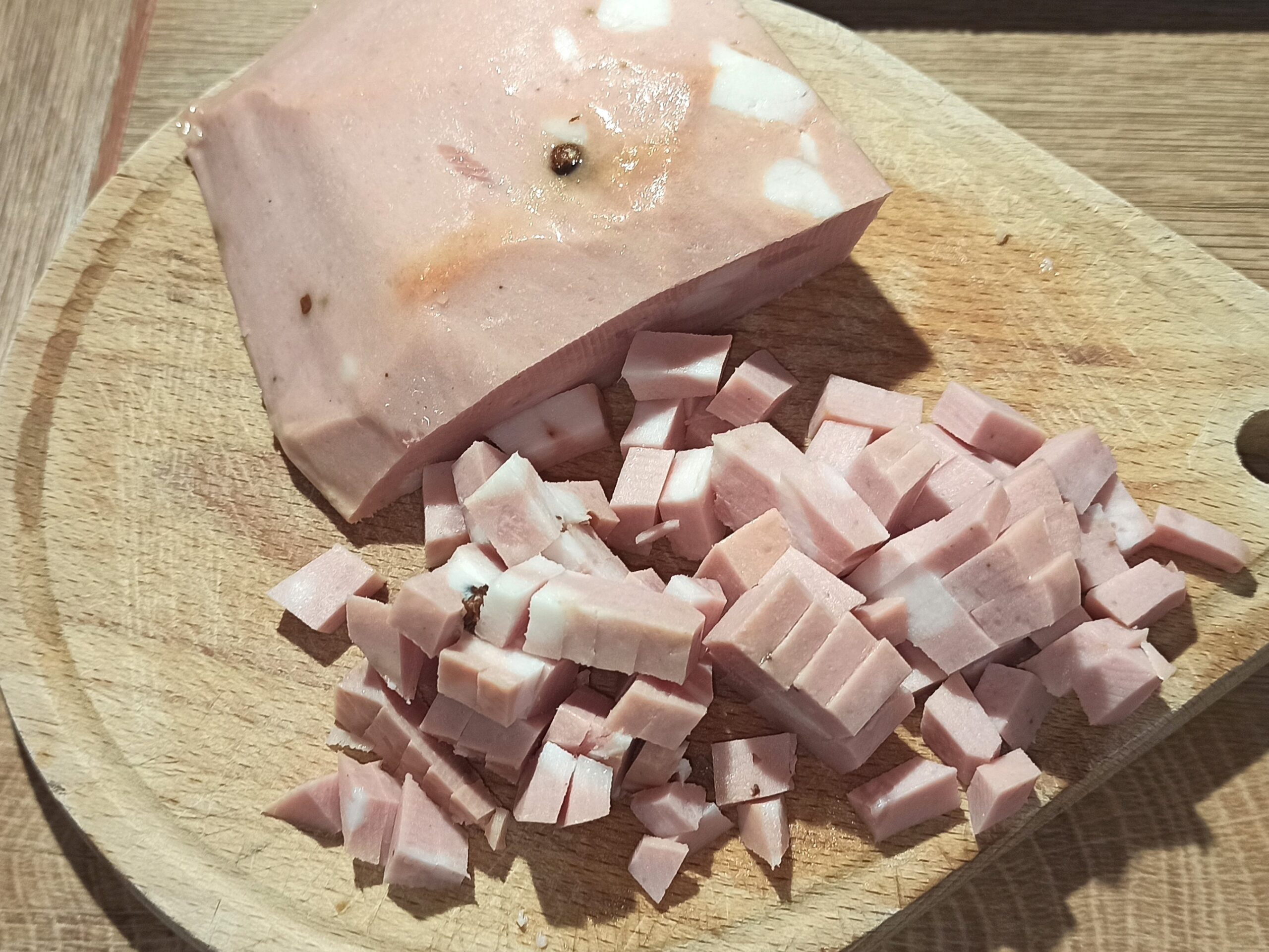 Nel frattempo tagliate la mortadella a cubetti.