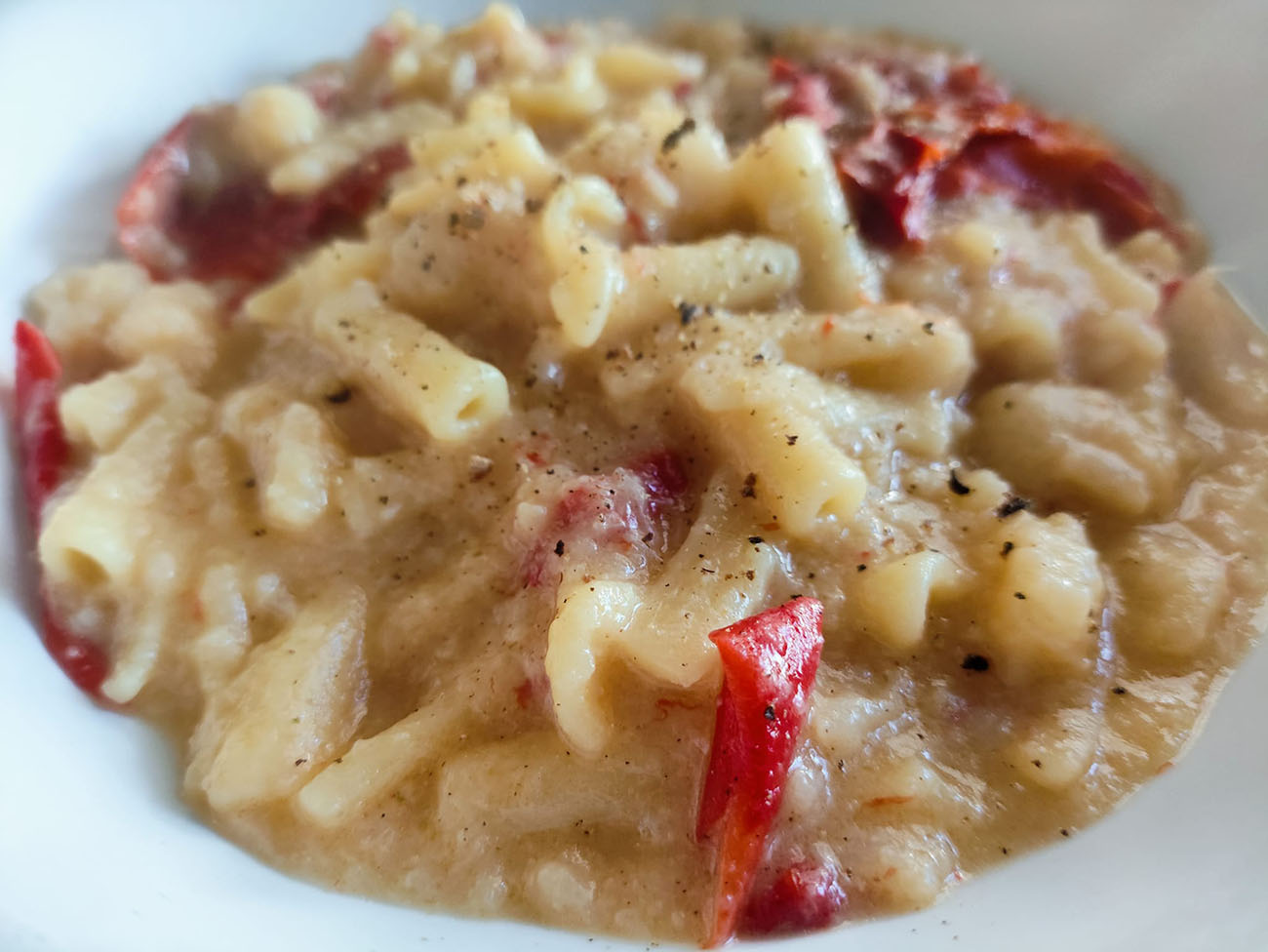 Pasta mista e Cavolo con Peperone di Senise. Un piatto della tradizione contadina che profuma di casa e di genuinità. La pasta mista si sposa perfettamente con il cavolo, creando un primo piatto cremoso e avvolgente. Il peperone di Senise aggiunge una marcia in più, donando un tocco di dolcezza e un aroma inconfondibile.
