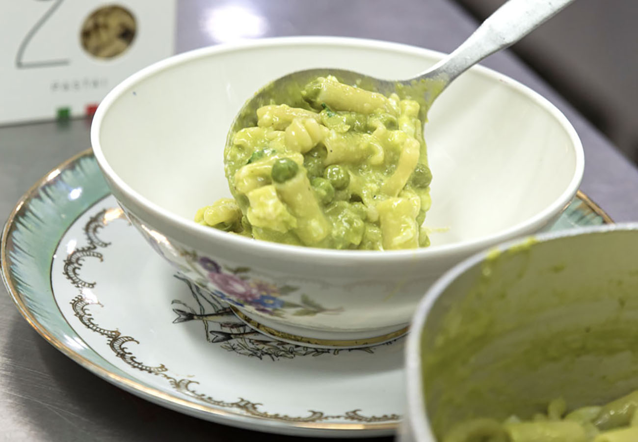 Pasta mista, piselli e baccalà