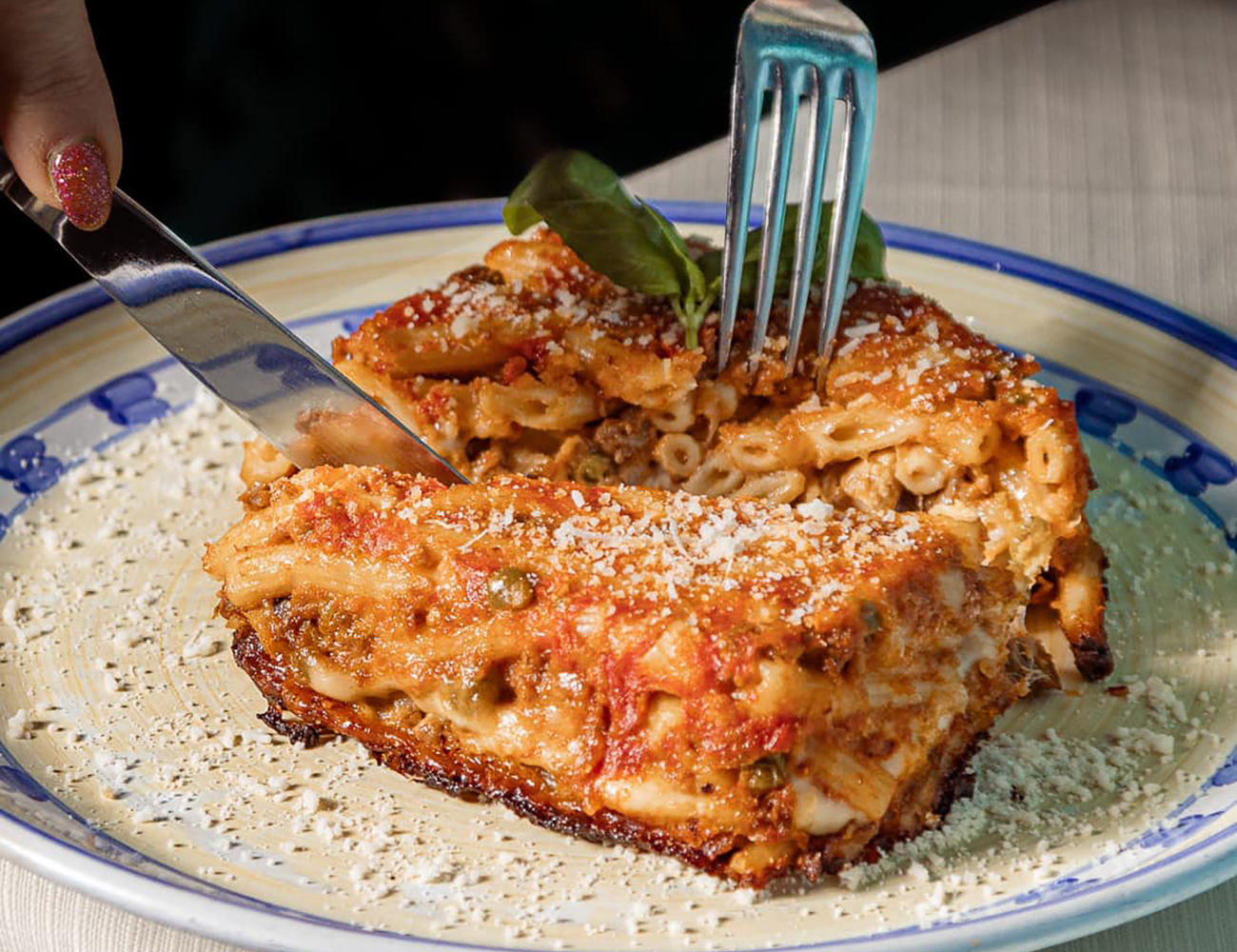Intanto bisogna Preriscaldare il forno a 200°C. Cuocete la pasta ‘ncasciata per circa 20-25 minuti , fino a quando la superficie sarà ben gratinata e croccante. Lasciate riposare la pasta ‘ncasciata per 5-10 minuti prima di servirla. Questo aiuterà i sapori ad amalgamarsi perfettamente. Decorare con qualche foglia di basilico fresco.