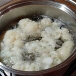 Per preparare la pasta cavolfiore e patate, iniziate a pulire e lavare il cavolo. Dividetelo in cimette, e scaldatelo in abbondante acqua leggermente salata.