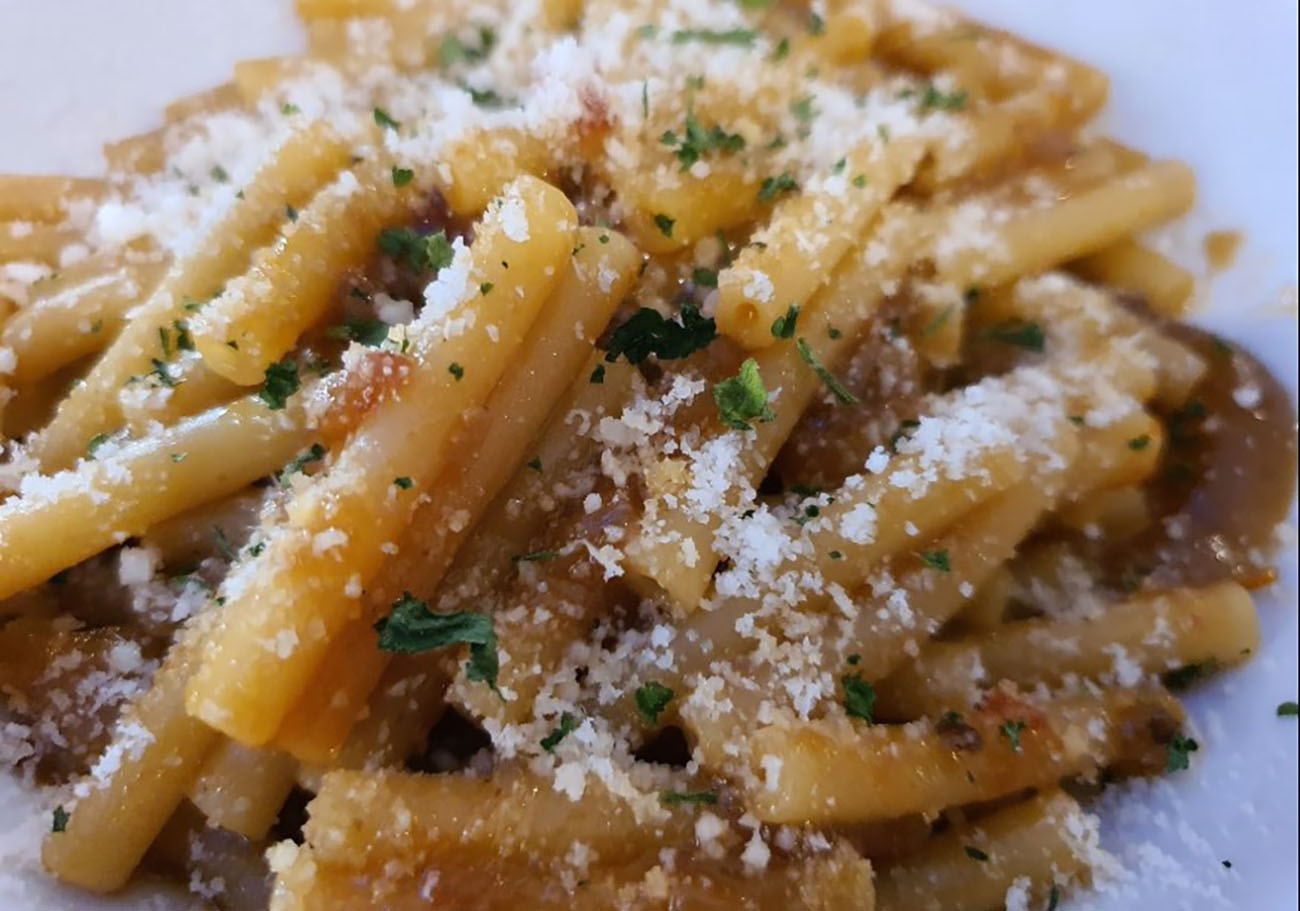 Questo piatto pare sia molto antico e sembra, secondo tradizione, che i napoletani l’abbiano poi preso come ispirazione per creare la famosa genovese, che a differenza di questo primo è a base sia di cipolle che di carne. Vediamo quindi come si prepara questa antica ricetta, l’ideale sarebbe accompagnarlo con un buon bicchiere di vino rosso. Immancabile sarà la scarpetta con del pane fresco!
