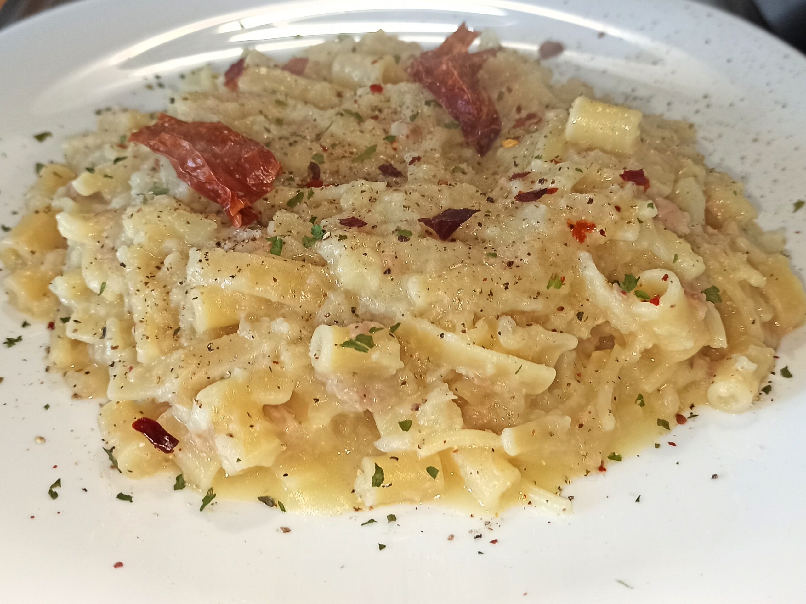 Una gustosa variante del classico piatto preparato con il cavolfiore. Il cavolfiore è molto versatile in cucina, è potete abbinarlo con molti altri ingredienti. Oggi è toccato al tonno sott’olio, che amalgamato insieme, hanno donato cremosità e sapore di mare al piatto, il tutto completato da un tocco di croccantezza, donato dai peperoni cruschi.