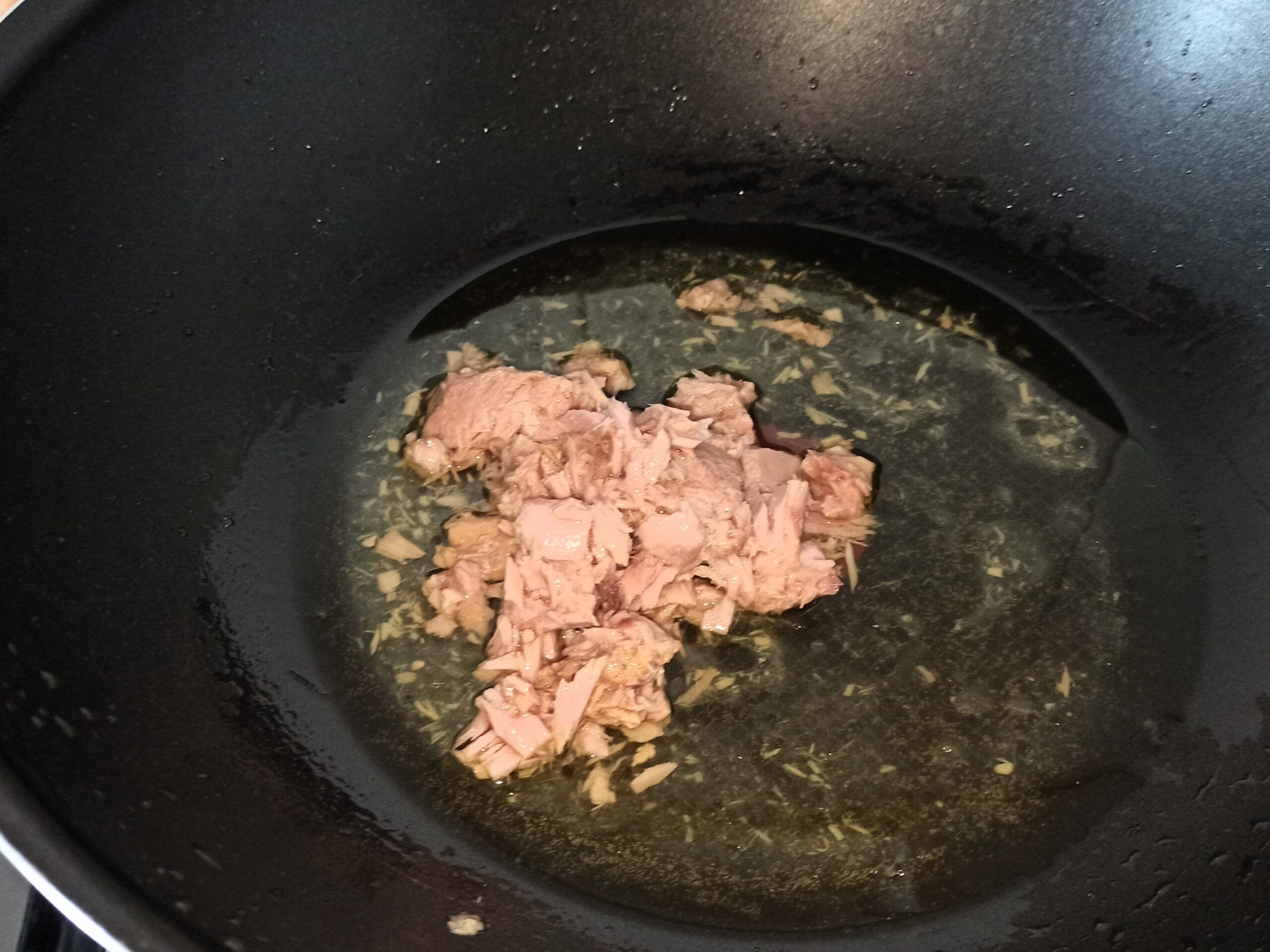 Eliminate lo spicchio d’aglio e aggiungete il tonno.
