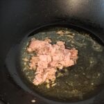 In una capiente padella mettete un paio di giri d’olio evo, aggiungete lo spicchio d’aglio, e fatelo imbiondire.