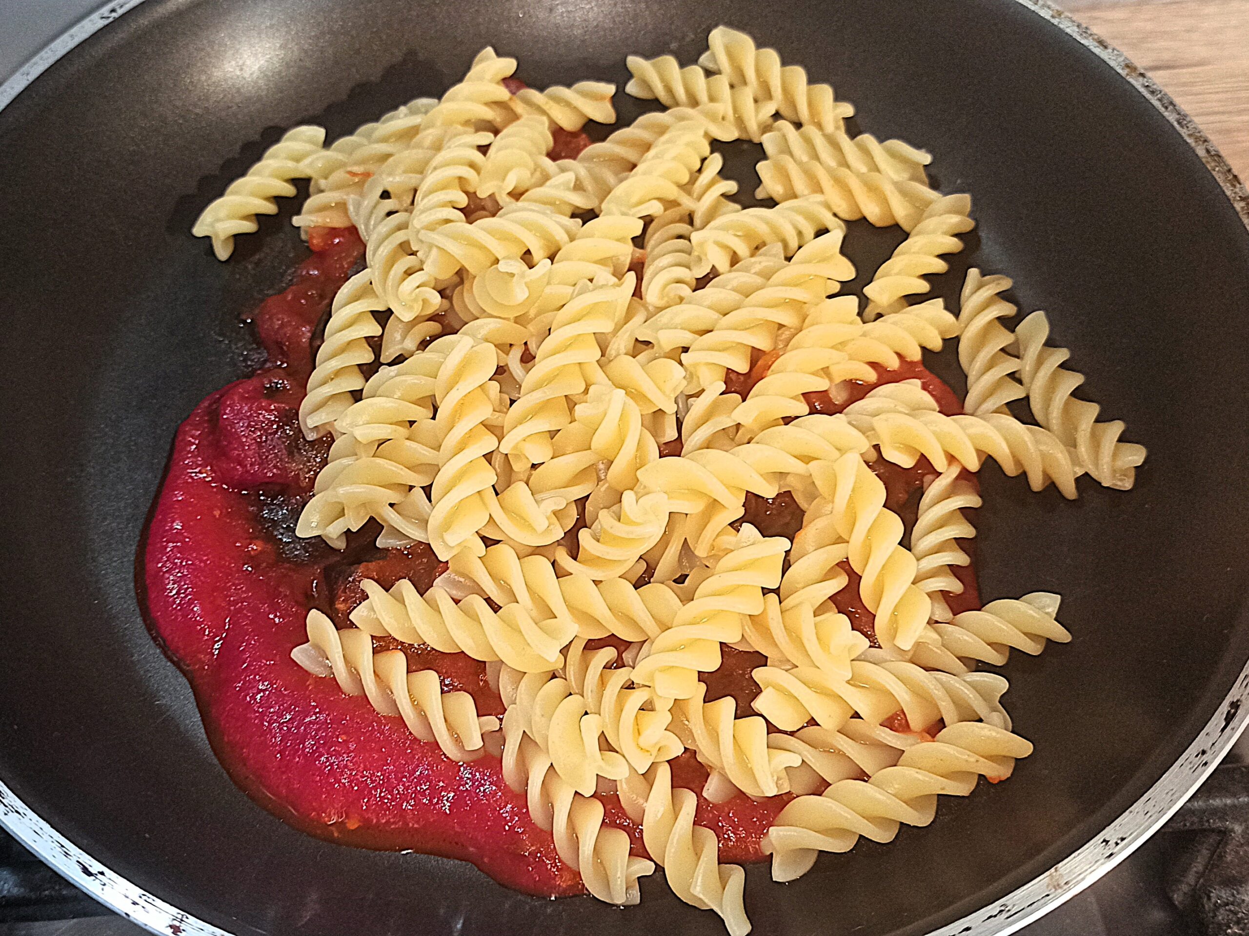 Cuocete la pasta in abbondante acqua leggermente salata, colatela nella padella.