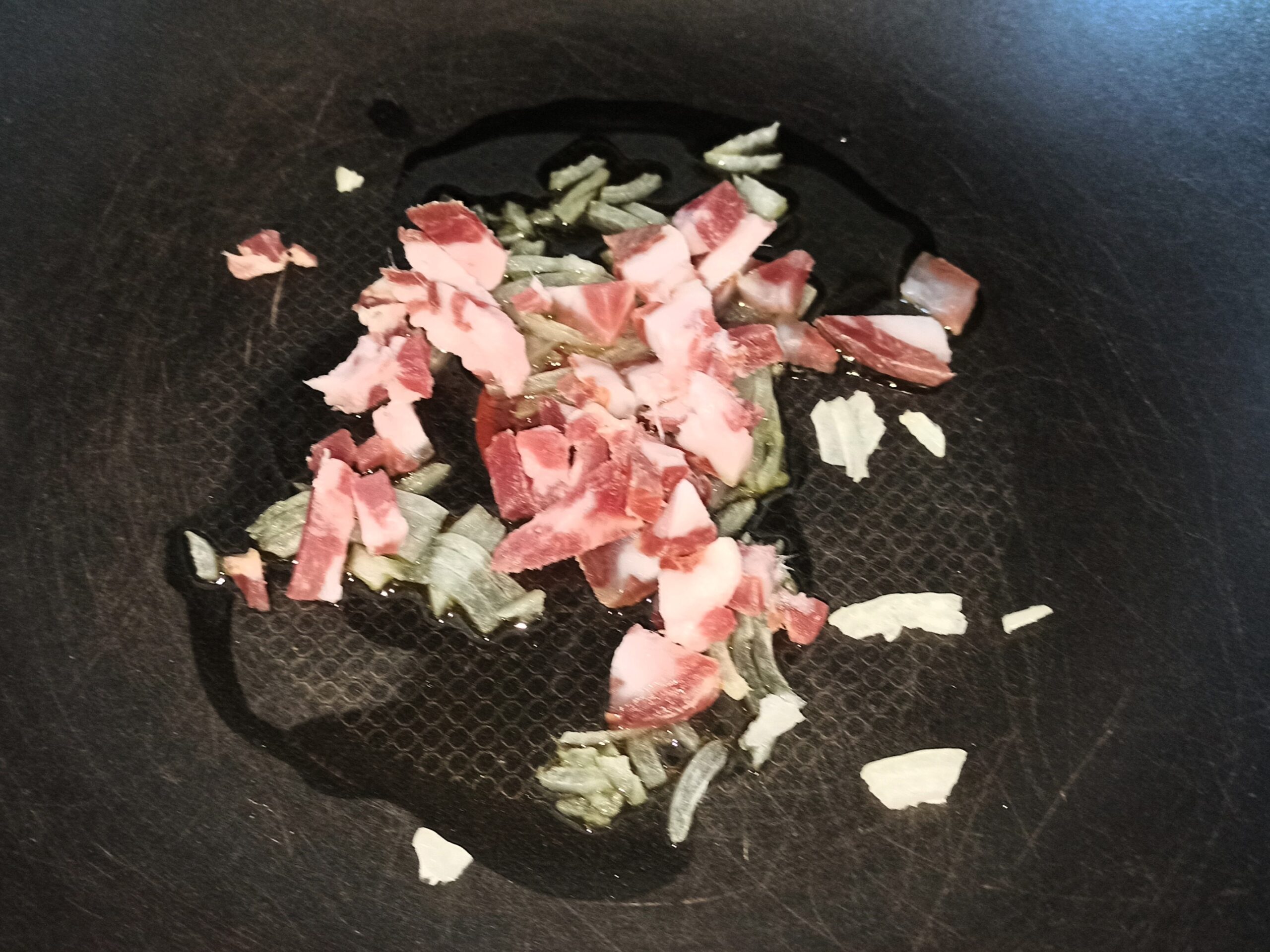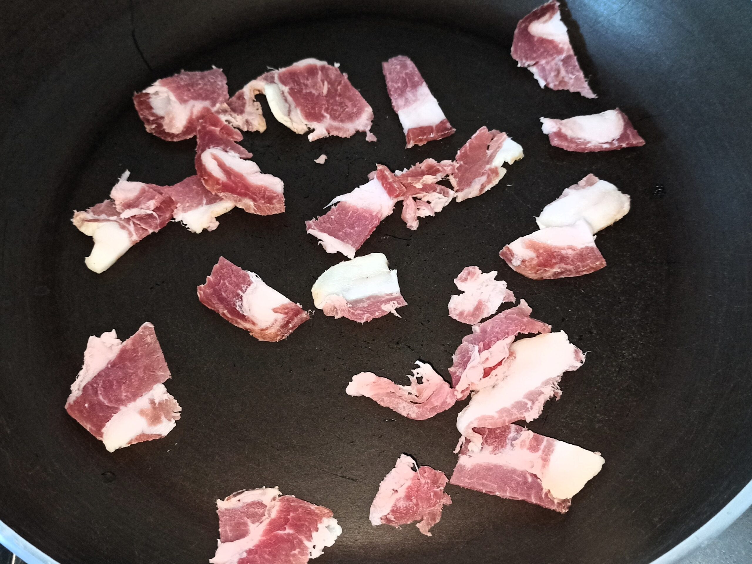 Nel frattempo mettete in una padella la pancetta, e fatela rosolare senza aggiungere ulteriori grassi, facendo attenzione a non farla bruciare, poi mettetela a raffreddare su un foglio di carata assorbente.