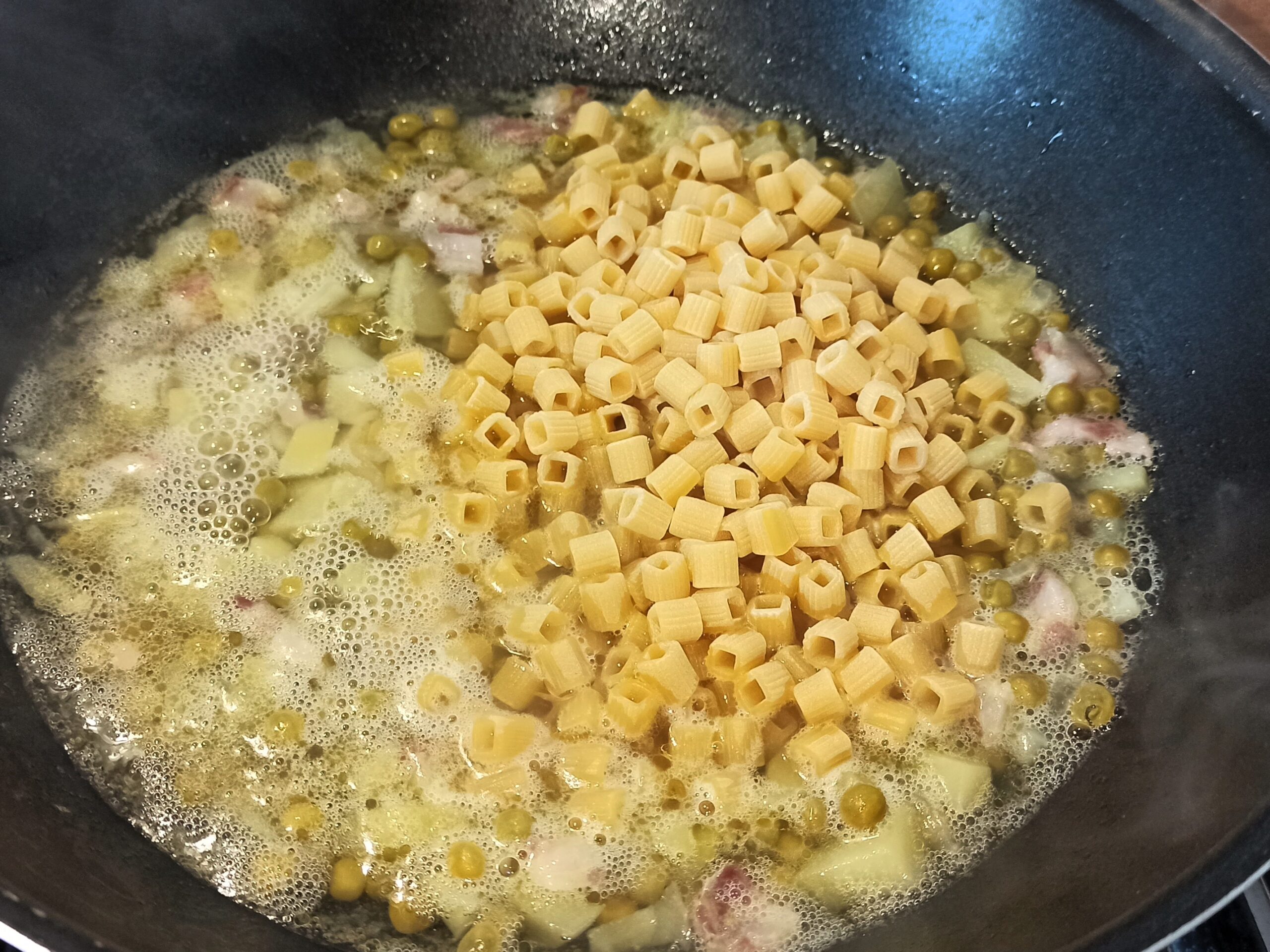 La pasta patate, piselli e pancetta croccante, è facile veloce da preparare. Un primo piatto che piace a grandi e piccini, le patate lo rendono cremosissimo, mentre la pancetta donano una nota di croccantezza. Tre semplici ingredienti che si trovano facilmente in cucina, per un piatto vegetariano, potete non aggiungere la pancetta.
