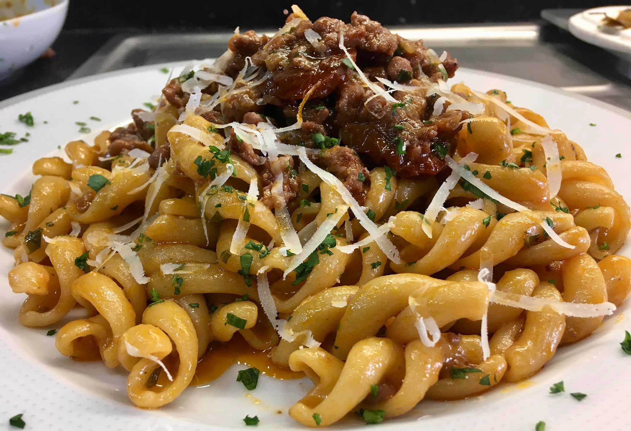 Pasta di San Nicola con salsiccia e pomodori secchi