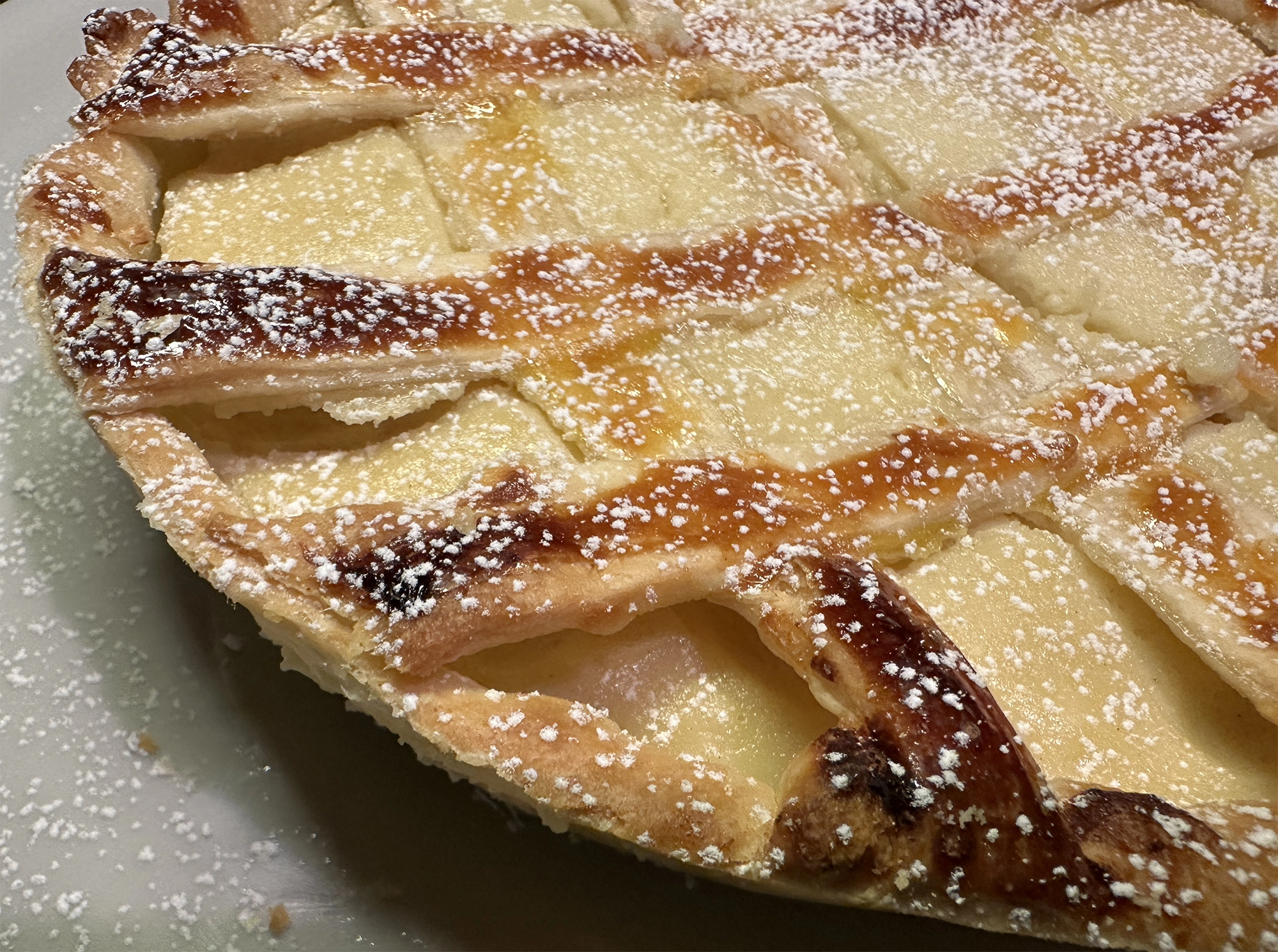 Frullato il tutto o setacciate a mano la ricotta oppure con un minipimer frullate il tutto per cercare di eliminare i grumi. Prepariamo la pasta sfoglia. Prendiamo lo stampo e, come nel video, mettiamo sulla base dopo aver imburrato un po’ lo stesso stampo. Aggiungiamo la farcia e cerchiamo di fare le strisce con la pasta sfoglia che avanza. Inforniamo a 200 gradi per circa 30/35 minuti e poi gli ultimi 5 minuti ( 35/40 in tutto) impostiamo il forno solo con la cottura in basso e ventilato in maniera che possa cuocere anche sotto. Sforniamo e aspettiamo un po’ che freddi. Una volta freddata aggiungiamo lo zucchero a velo. E’ pronta.