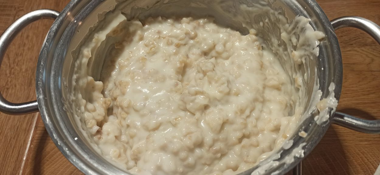 Per preparare la pastiera sbrisolona, iniziate a preparare la crema di grano. Versate il grano in un tegame, aggiungete il latte, il burro e la buccia del limone. Cuocete a fiamma dolce, fino ad ottenere una crema.