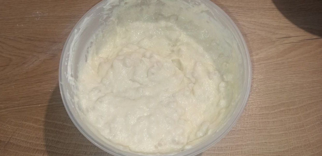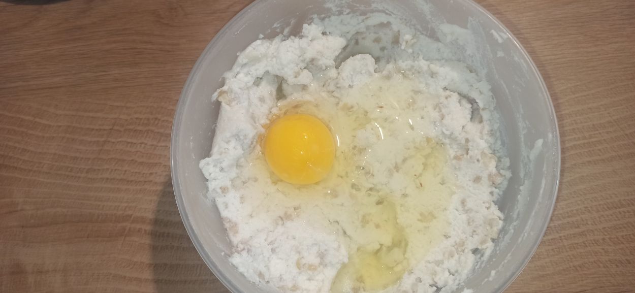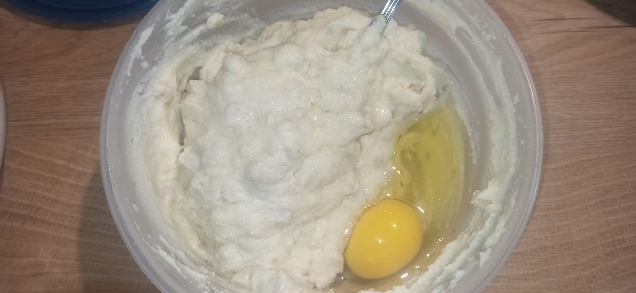 unite anche la cannella e la fialetta di acqua di millefiori, mescolate bene. Aggiungete un uovo,