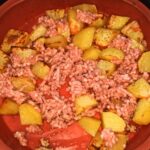 mescolate bene, e continuate la cottura, fino che la carne e le patate non risulteranno belle dorati e croccanti, facendo attenzione a non bruciarle. Impiattate, servite e gustate calde e croccanti.