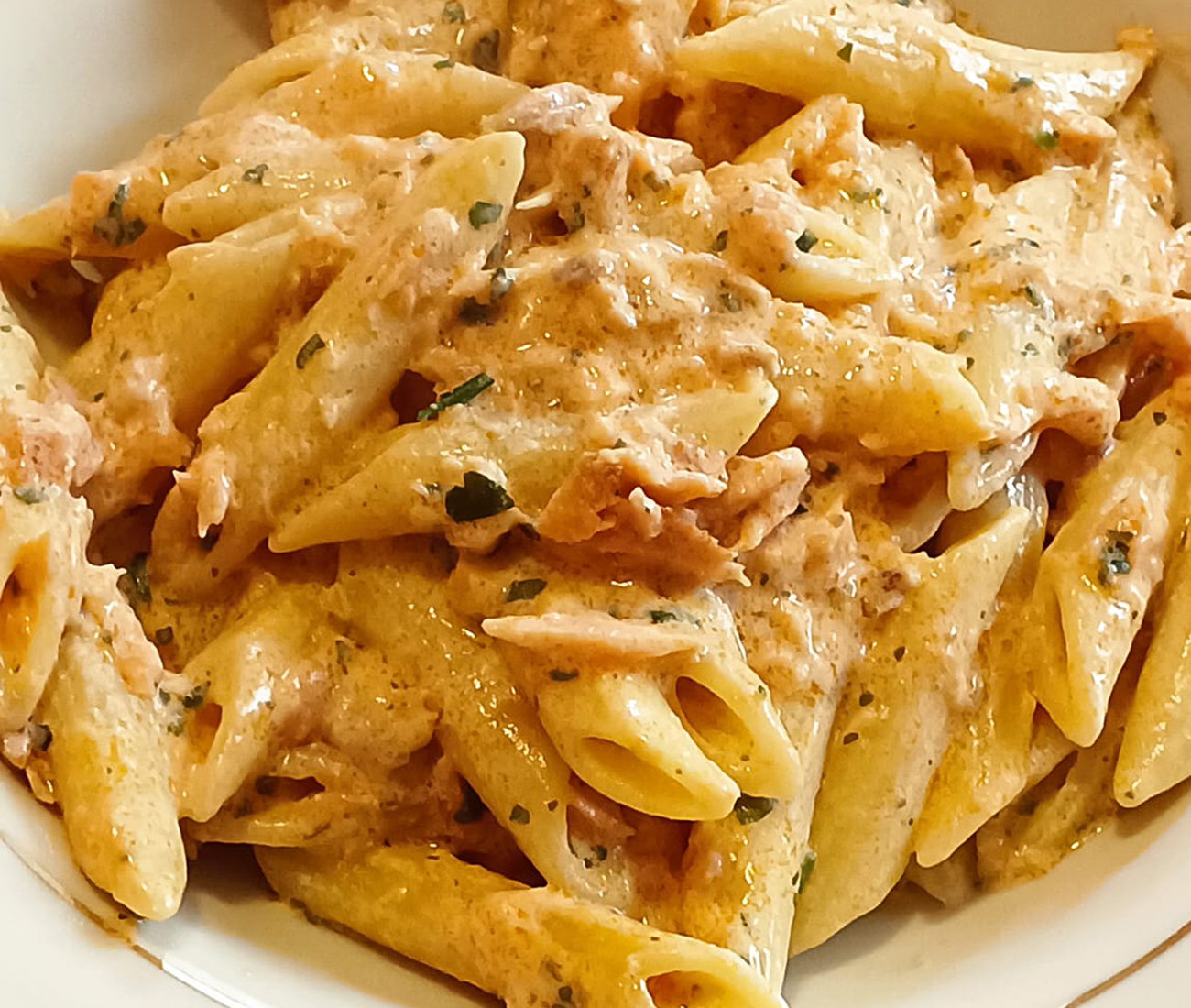 Le penne con salmone alla fiamma non sono soltanto un piatto delizioso, ma anche una portata bella da vedere. L’occhio vuole la sua parte, anche in cucina, e quando prepariamo una cenetta per il nostro partner o per gli amici ci teniamo a sorprenderli. Se volete fare colpo è questa la ricetta che fa per voi. Preparatelo a vista: l’utilizzo del cannello al termine della preparazione per fiammeggiare il salmone lascerà tutti stupefatti. Vi ritroverete i cellulari puntati addosso in men che non si dica. E a tutto questo si aggiunge una combinazione di sapori ricchi e cremosi, per soddisfare ogni palato.