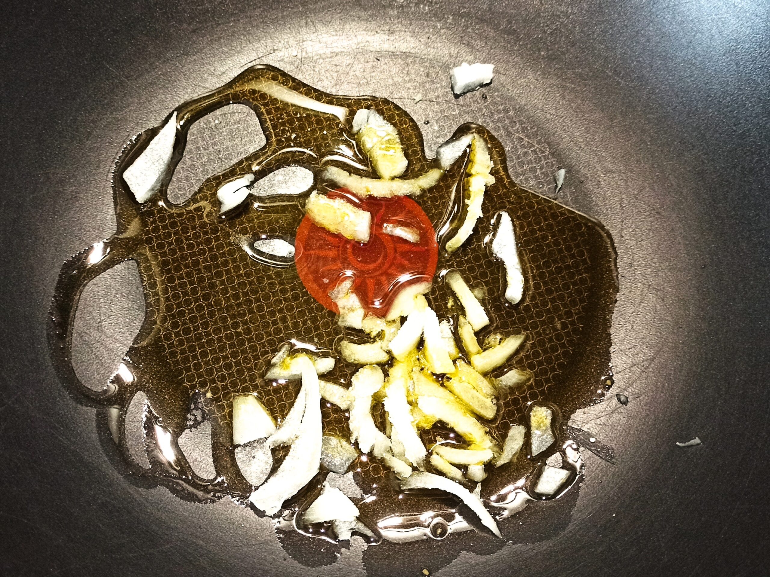 Fate cuocere ancora per cinque minuti. Aggiungete lo zenzero e la salsa di soia,