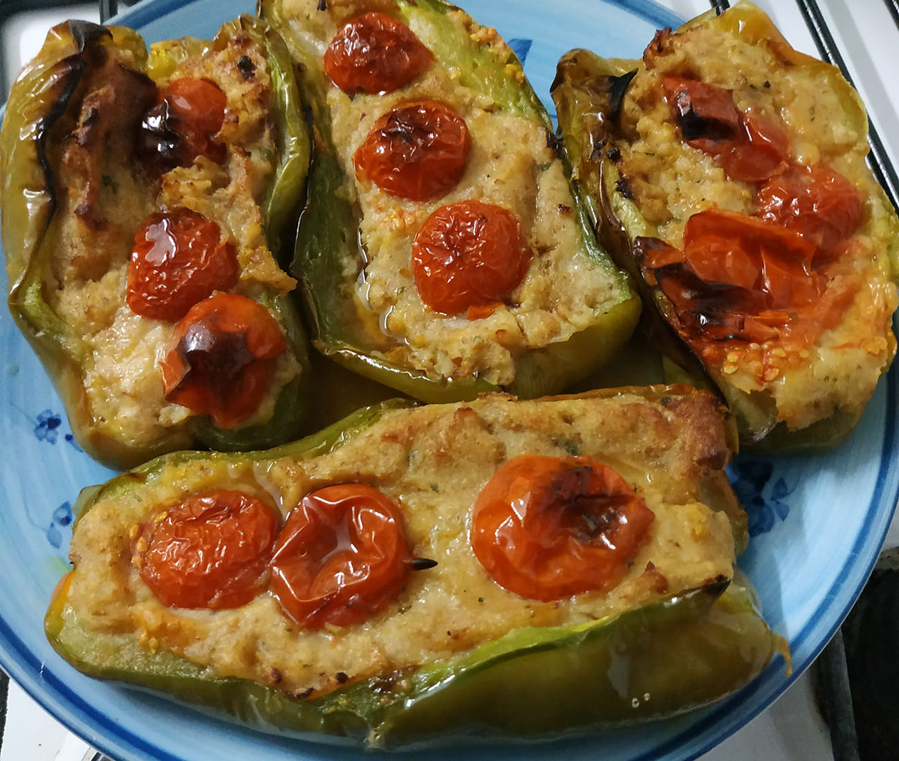 Per la cottura potete decidere o il forno o la froggotrice ad aria, vediamo quindi i tempi. Se optate per la cottura in forno, cuocete i peperoni a 180°C per 25-30 minuti , fino a quando saranno morbidi e leggermente dorati in superficie. Se invece optate per la cottura in friggitrice ad aria, cuoceteli a 180°C per 15-18 minuti , controllando che siano ben cotti ma ancora sodi. Servite i vostri peperoni a barchetta ripieni di tonno e pomodorini caldi o tiepidi, con un filo d’olio a crudo per esaltare il sapore.
