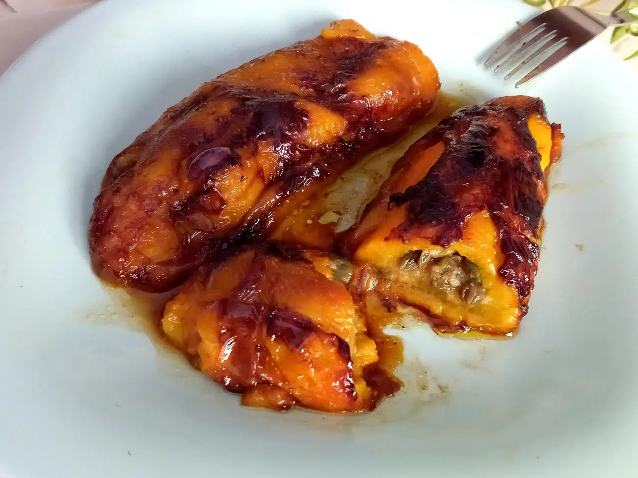 L’unica cosa a cui dovrete stare attenti è girarli nella padella. Aiutatevi con due schiumarole ( non lo fate con forchette o cucchiai a meno che non avete già una certa manualità). Fateli cuocere una decina di minuti per lato. Se volete un consiglio potete prendere delle scorzette di pane e farci dei tappi per il peperoni. Ripassateli in padella oppure con un filo d’olio metteteli a 180 gradi in friggitrice ad aria per 8 minuti.