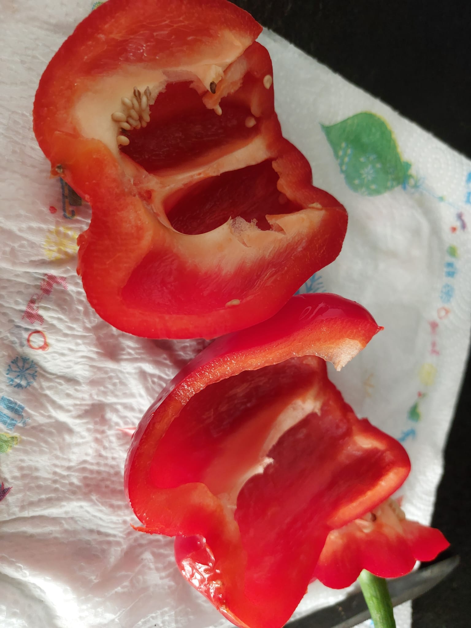 Per preparare i peperoni ripieni in friggitrice ad aria, iniziate a lavare ed asciugare bene i peperoni. Tagliateli a metà, nel senso della lunghezza, eliminate i semi interni ed il picciolo.