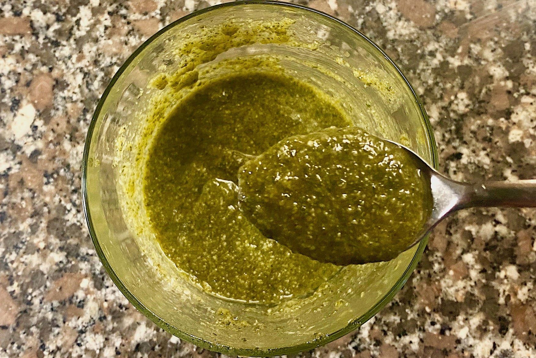 Quando avrete un impasto omogeneo e poco granuloso aggiungete il parmigiano, mischiate con un cucchiaino e frullate ancora senza insistere troppo: il pesto dovrà avere alla fine una grana minuta ma visibile e non essere come una crema. Mettetelo in un contenitore con coperchio ermetico e se possibile aspettate qualche ora a consumarlo, per dar tempo a sapori e profumi di amalgamarsi. Suggerisco di usare subito un barattolo in vetro dove entri la testa del pimer: alla fine basterà chiudere col suo coperchio, senza stare a travasare. Tenuto in un contenitore ben chiuso si conserva una settimana nel frigo. Si può congelare e dura 3 mesi nel freezer. Questo pesto ha come diffusa variante l’uso di gherigli di noce al posto dei pinoli: il gusto cambia sensibilmente ma è altrettanto buono.