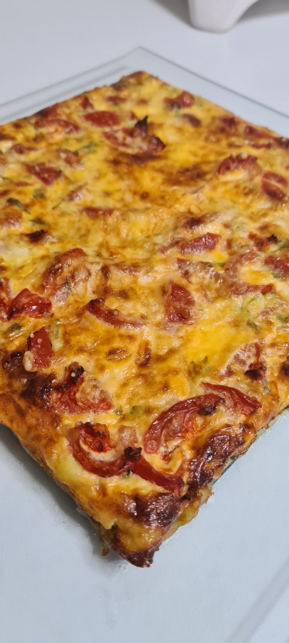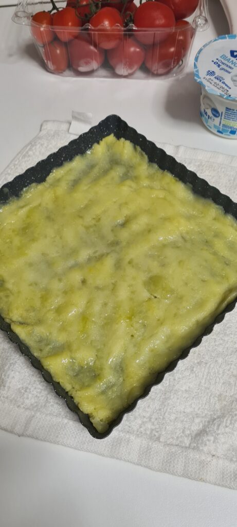 Questa versione, arricchita con yogurt greco intero, formaggi a julienne e pomodorini datterini, è un perfetto equilibrio tra cremosità, freschezza e leggerezza. Un piatto che sa essere goloso, ma anche nutriente e più sano rispetto alle classiche pizze o torte salate. Ottima da servire come piatto unico per cena, come sfizioso antipasto rustico o anche da portare a tavola in versione brunch, questa pizza morbida dentro e gratinata fuori conquisterà grandi e piccini.