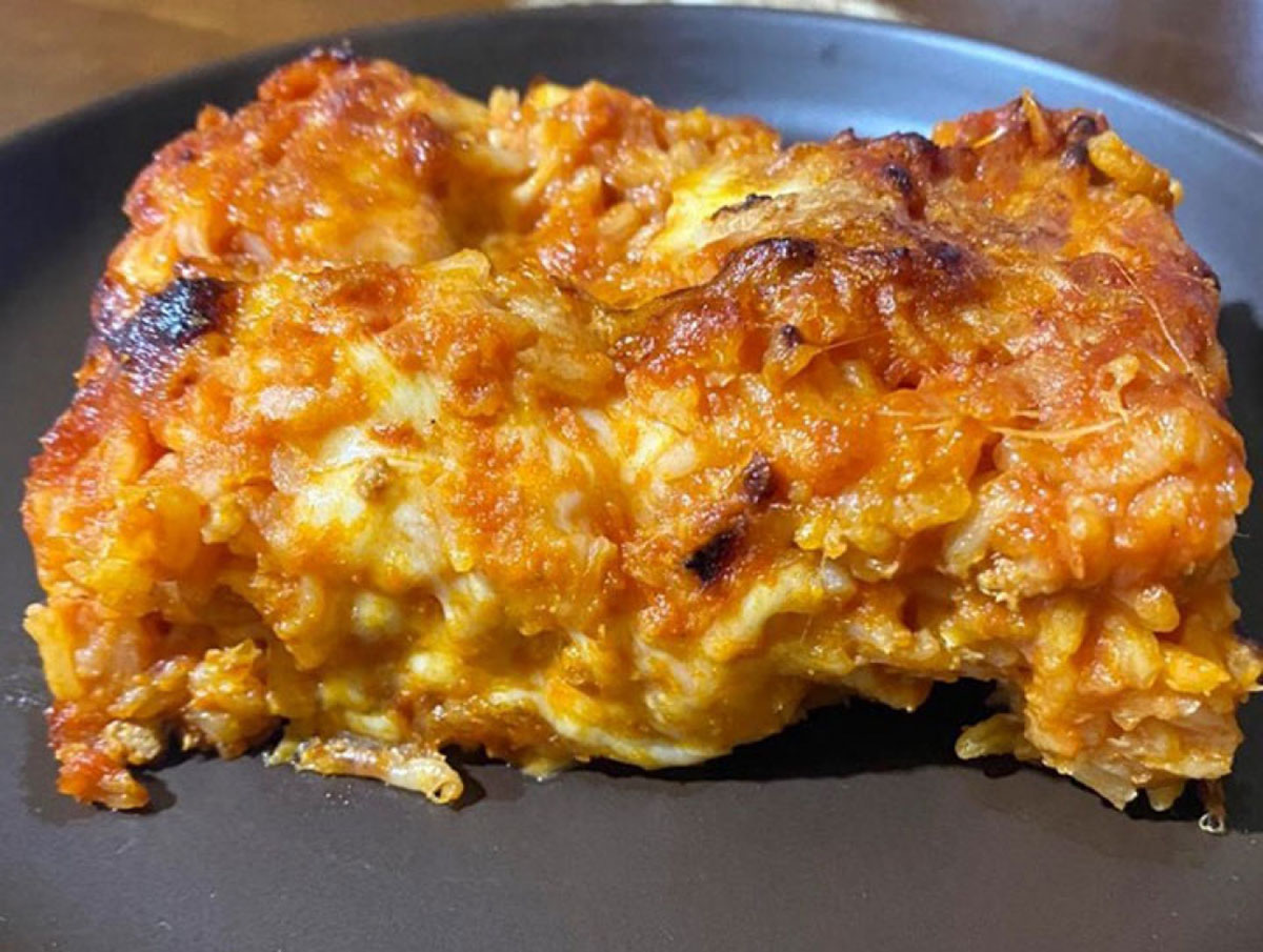 Mantecate con il parmigiano grattugiato. Rivestite una pirofila con carta forno e riempitela con la metà del risotto, quindi continuate con uno strato di mozzarella e uno di scamorza a fette. Ricoprite con altro risotto e completate con una generosa spolverata di parmigiano. Fate cuocere in forno statico a 180 gradi per 20 minuti. Gli ultimi 5 minuti azionate la funzione grill, così da ottenere una bella e buona crosticina sulla superficie. La vostra pizza di riso al forno è pronta. Buon appetito.