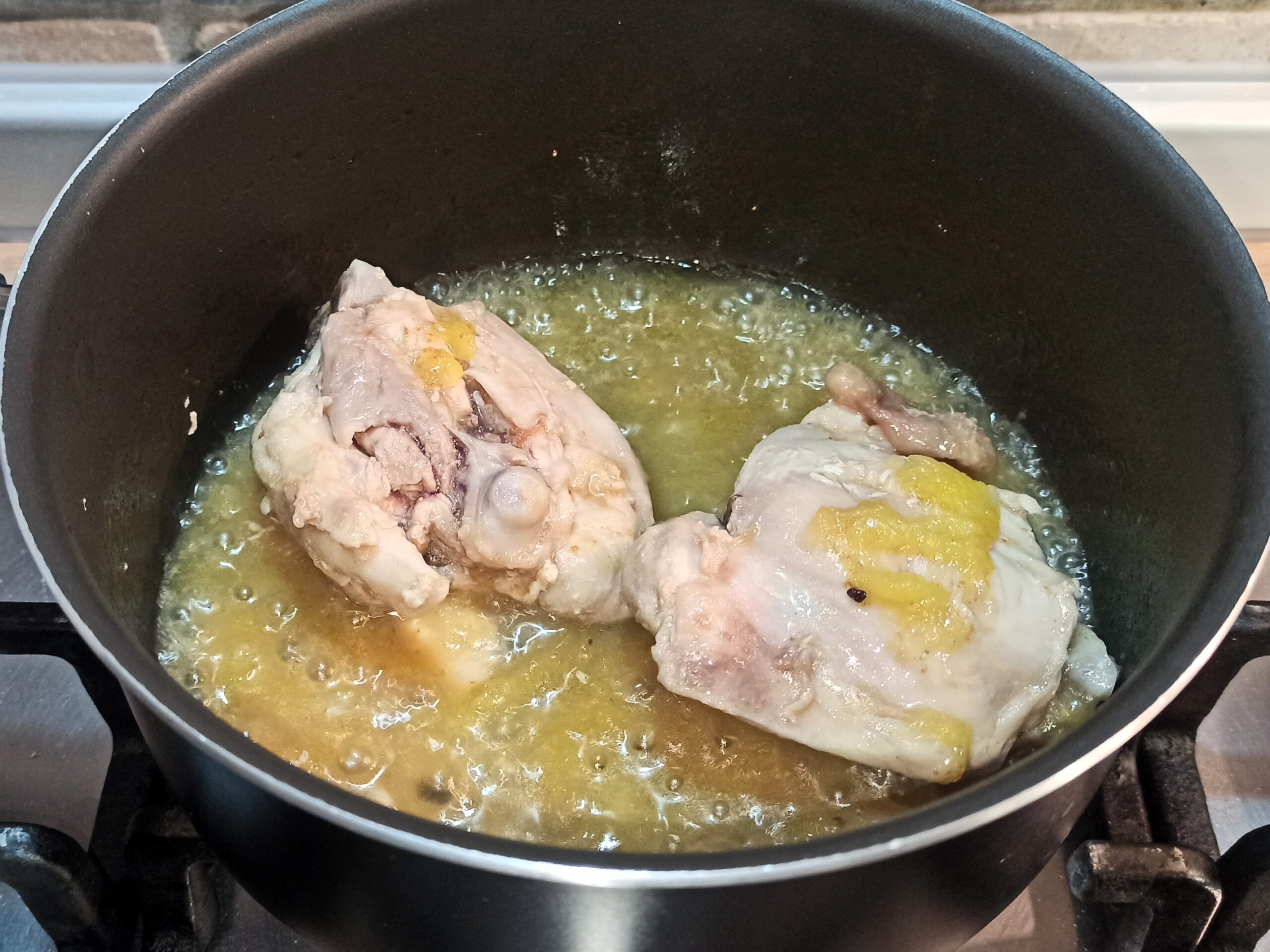 Verso metà cottura regolate di sale. Il tempo della cottura dipende dalle parti del pollo e dalla grandezza. A fine cottura, fate restringere il sugo, in modo da ottenere una salsetta da servire insieme al pollo.