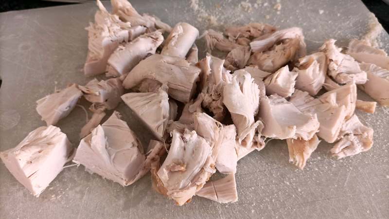 - 400 g di petto di pollo già lessato o arrosto, oppure fresco