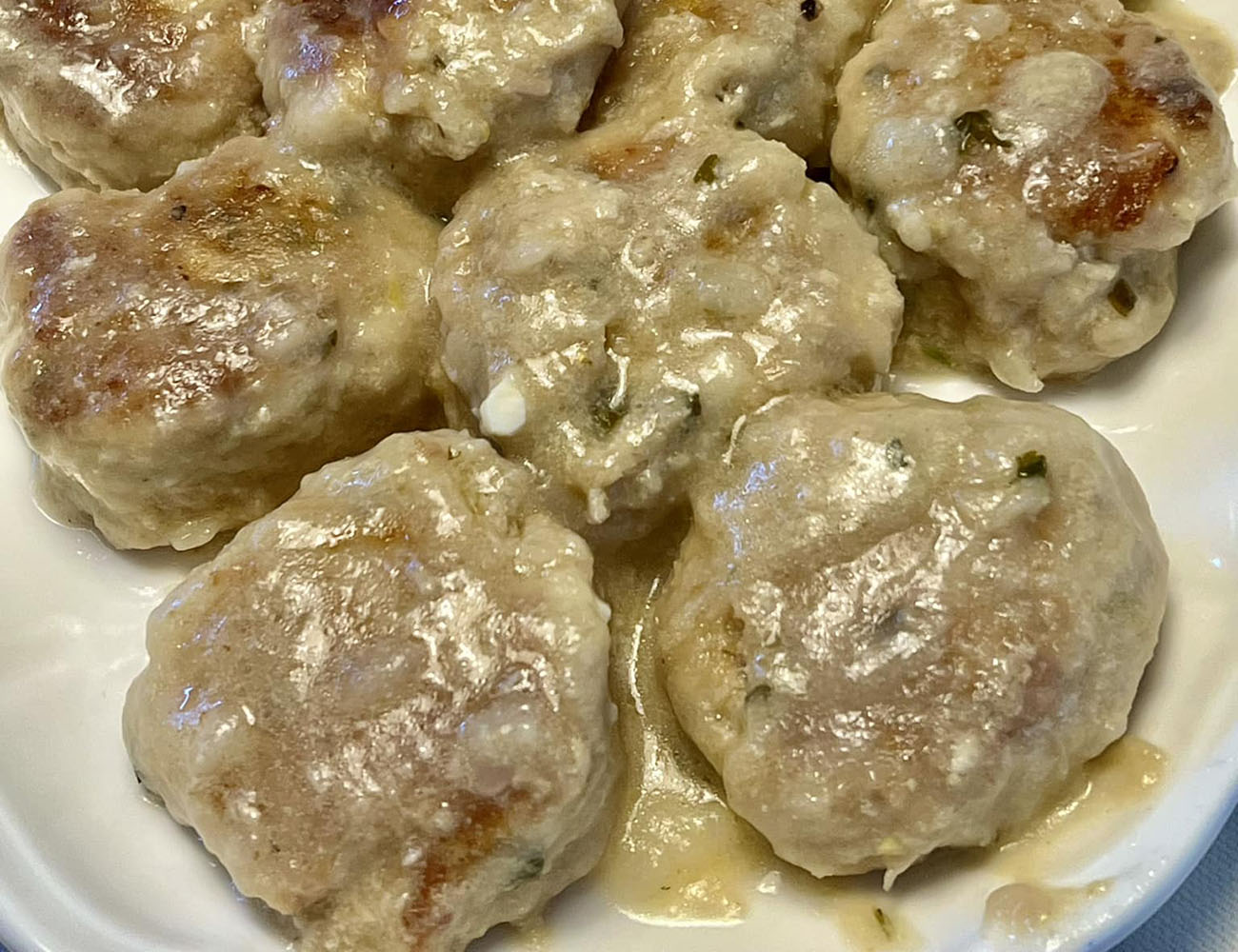 Formate delle polpette, preferibilmente di dimensioni piccole per mantenerle morbide. In una padella, scaldate due cucchiai di olio evo con uno spicchio d’aglio intero e rosolate le polpette su ogni lato finché saranno ben dorate. Aggiungete un bicchiere di acqua tiepida e il succo di limone alla padella, regolate di sale a piacere e lasciate cuocere per circa dieci minuti, o fino a quando il liquido si sarà ridotto formando un fondo cremoso.