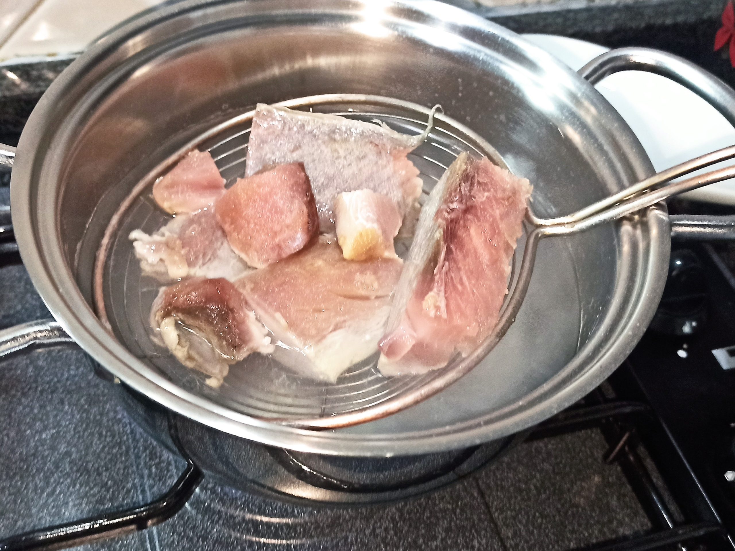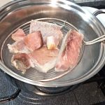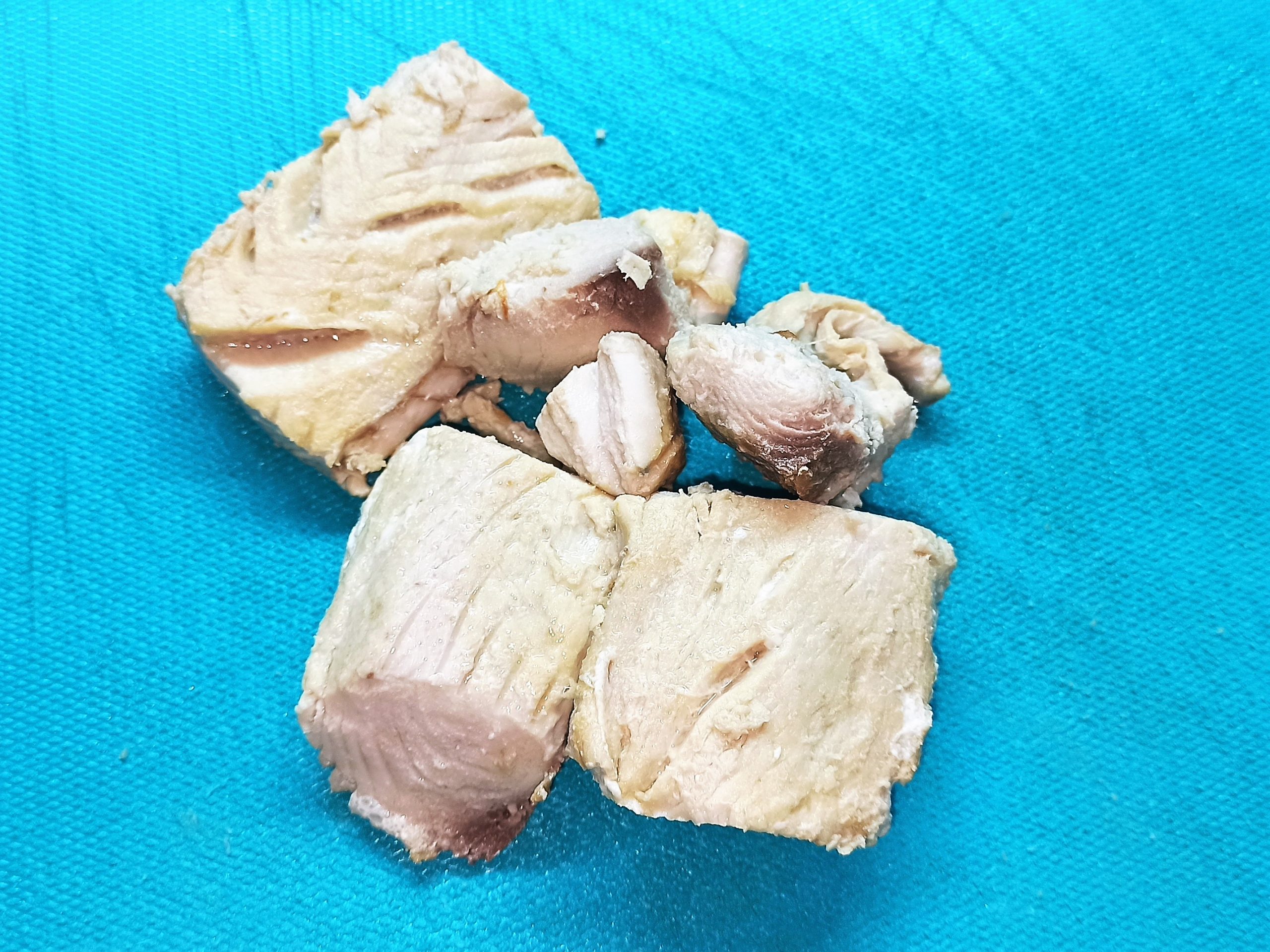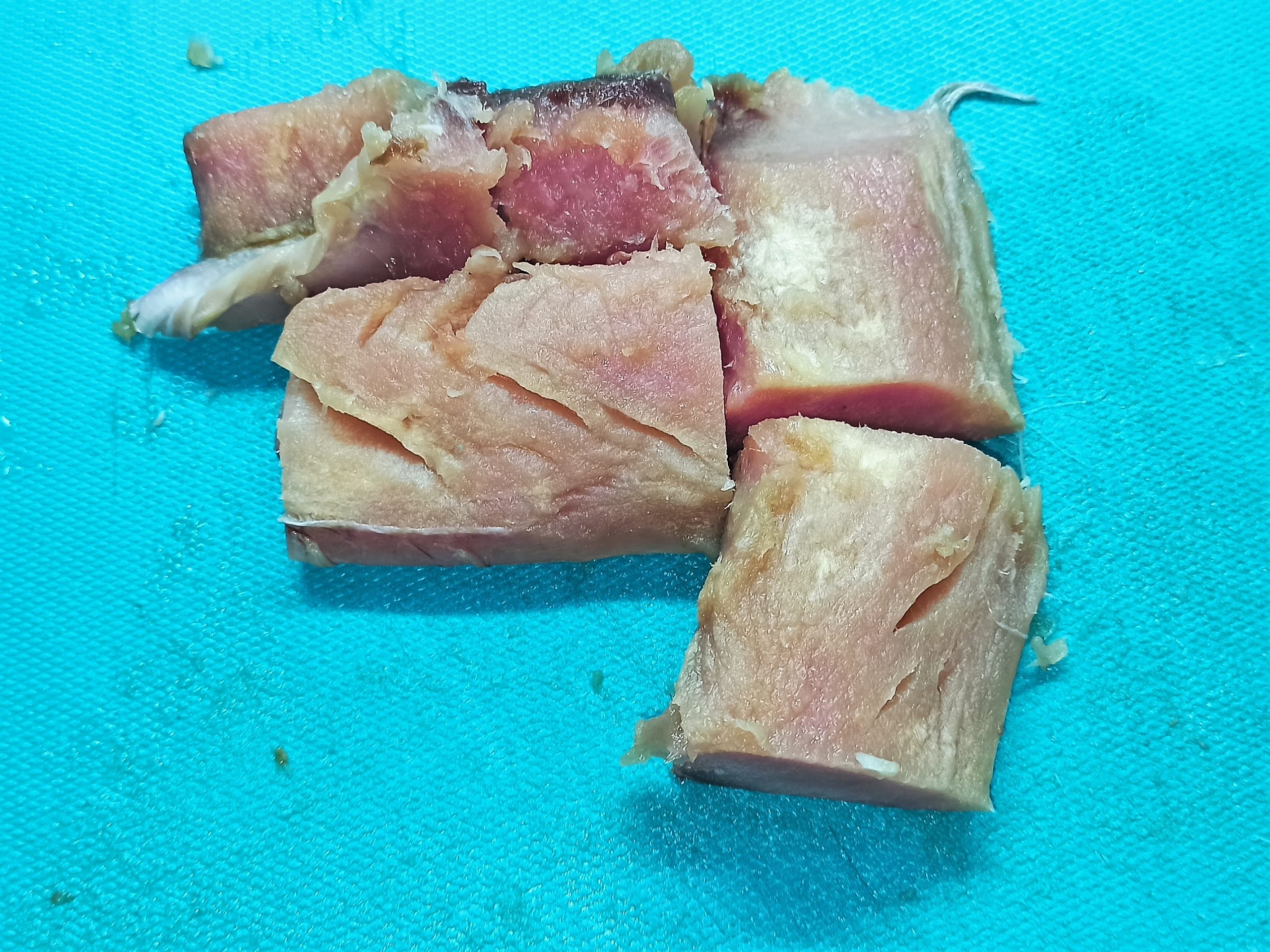 Per preparare le polpette di tonno e cipolla dal cuore morbido, iniziate a tagliare a pezzi il trancio di tonno, in una capiente pentola, portate ad ebollizione l’acqua leggermente salata. Immergete i pezzi di tonno, e lasciate cuocere per dieci minuti.
