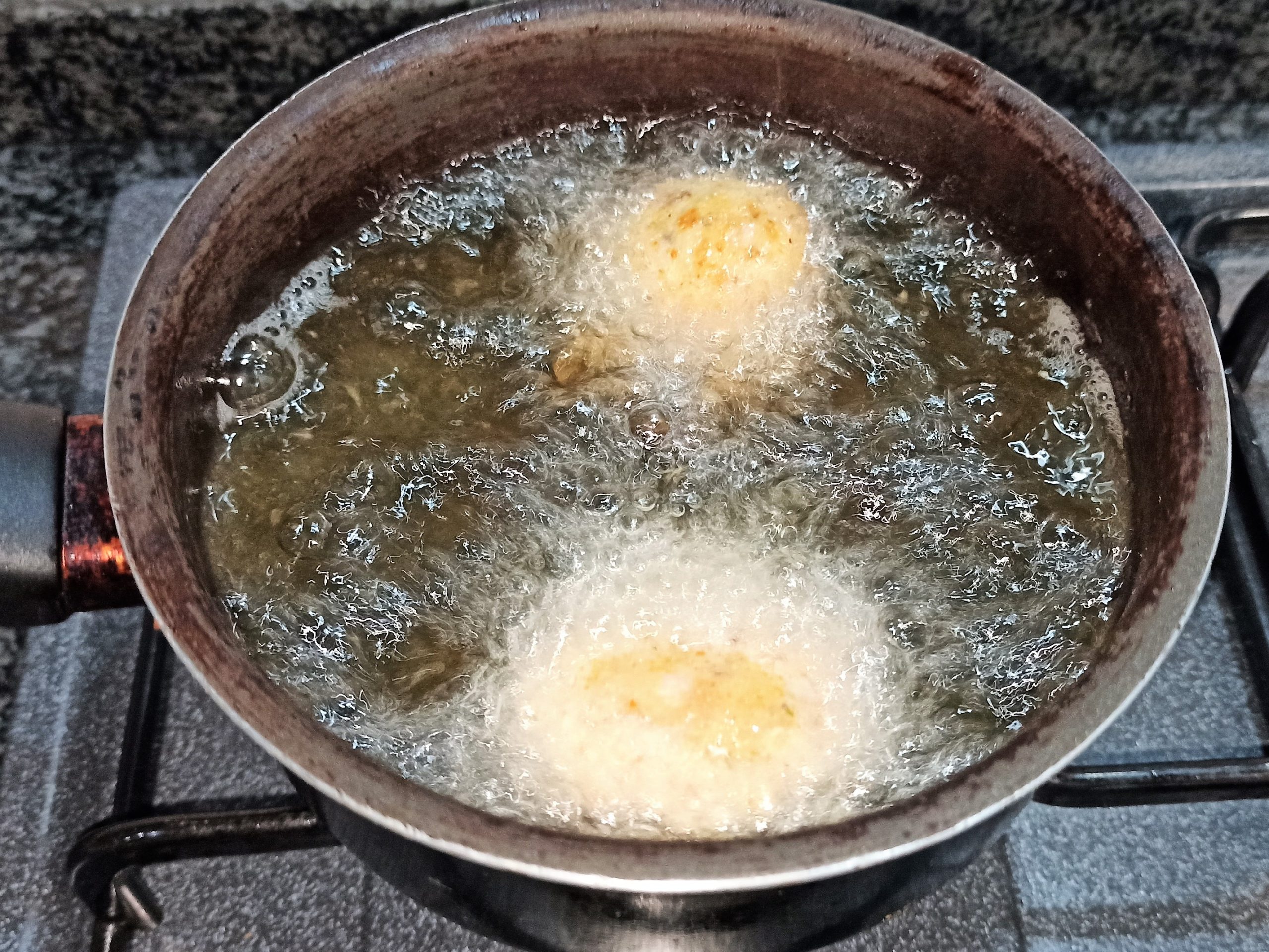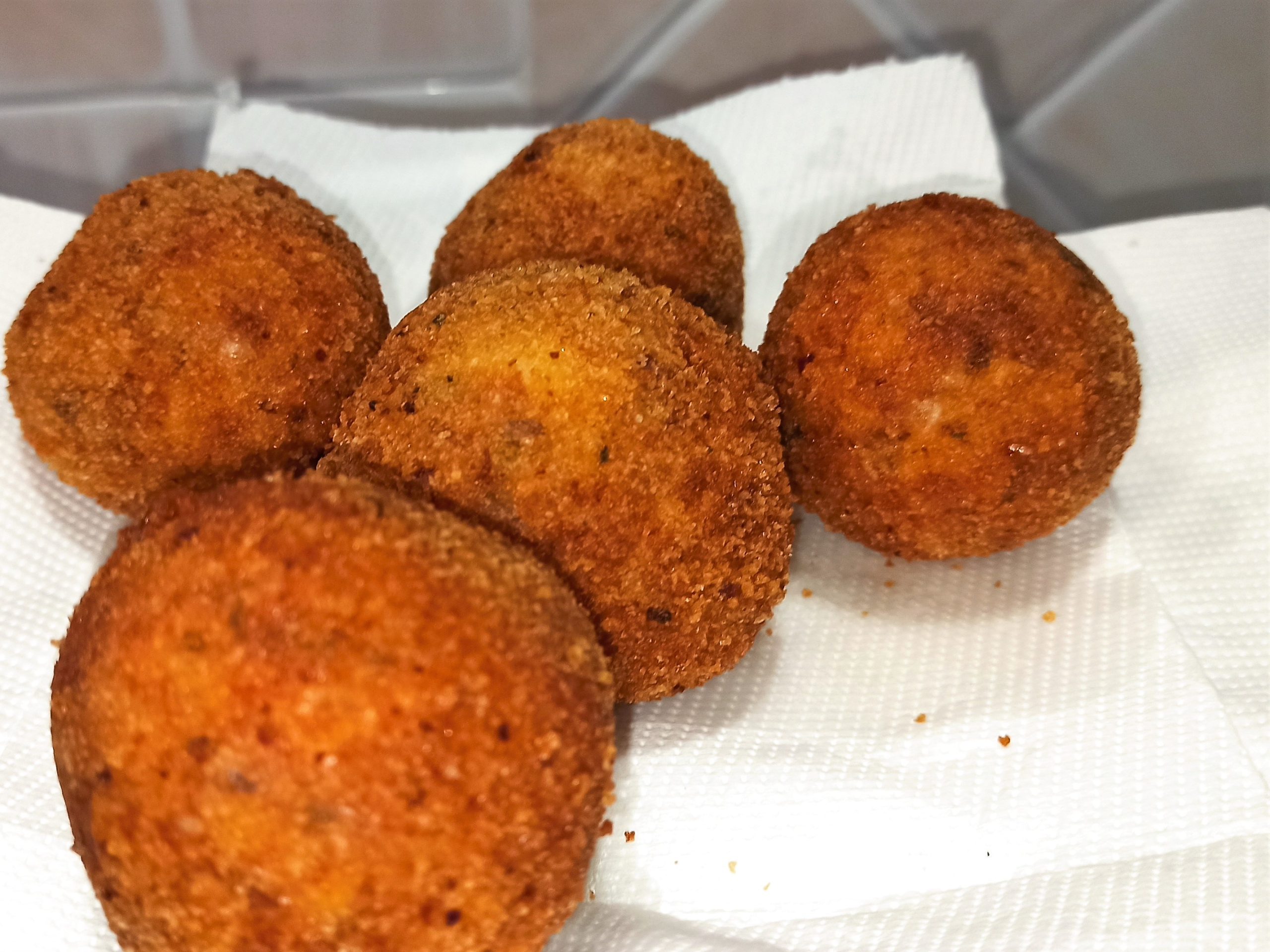 Passate le polpette nel pane grattugiato, e rimettetele in frigo per altri trenta minuti. In una capiente padella, oppure un pentolino alto, portate a temperatura l’olio di semi di arachidi, e friggete le polpette. Appena saranno dorate in maniera uniforme, posizionatele su un foglio di carta assorbente, in modo da eliminare l’olio in eccesso, servite calde.