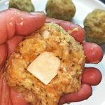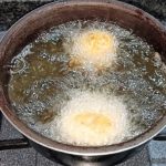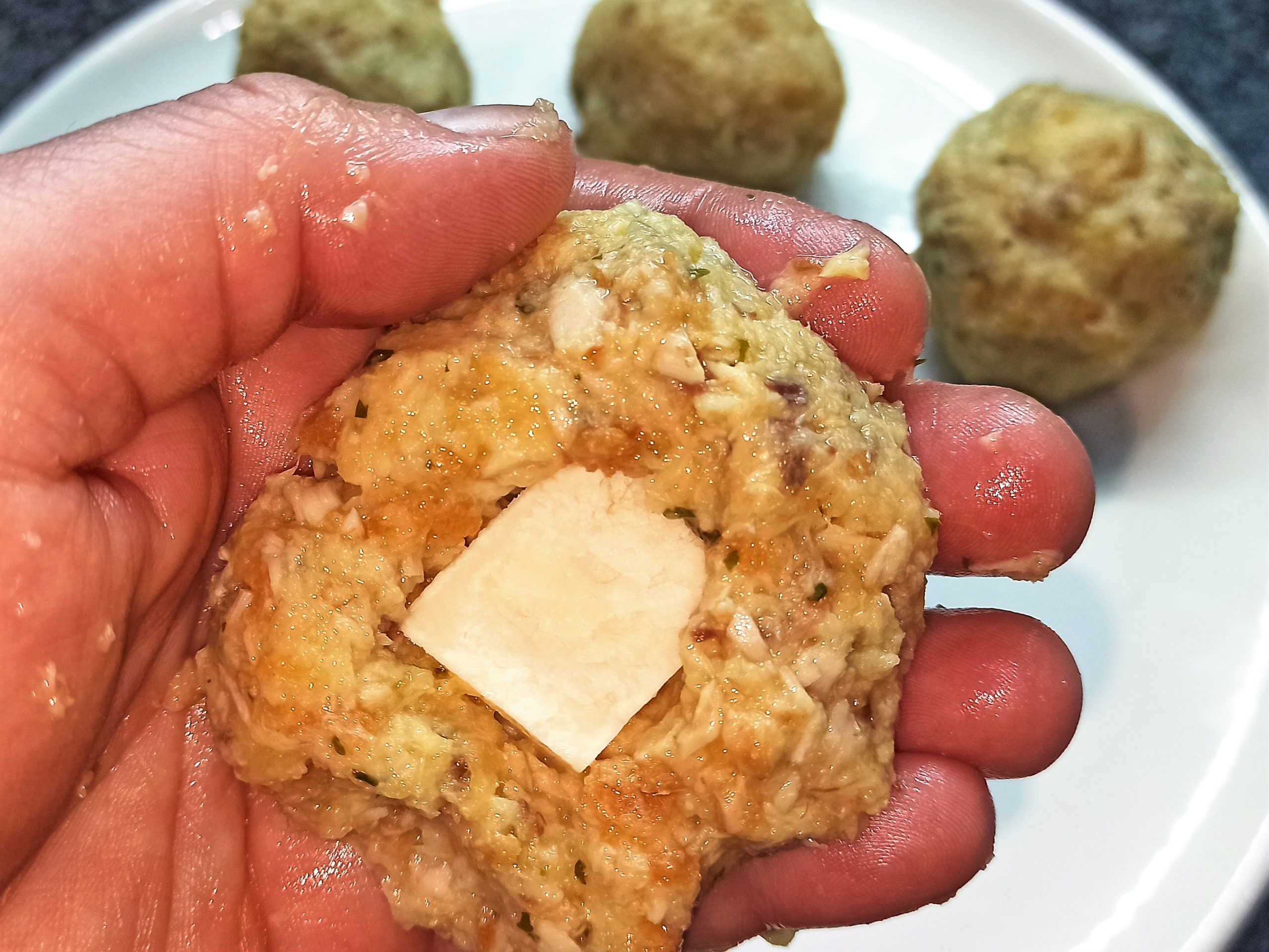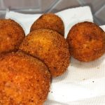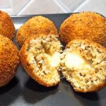 Aggiungete un uovo alla volta, regolate di sale ed amalgamate il tutto. Lasciate riposare l’impasto in frigo per circa trenta minuti. Trascorso questo tempo, iniziate a formare le vostre polpette, della grandezza che vi piace, al centro di ogni polpetta inserite un pezzetto di formaggio.
