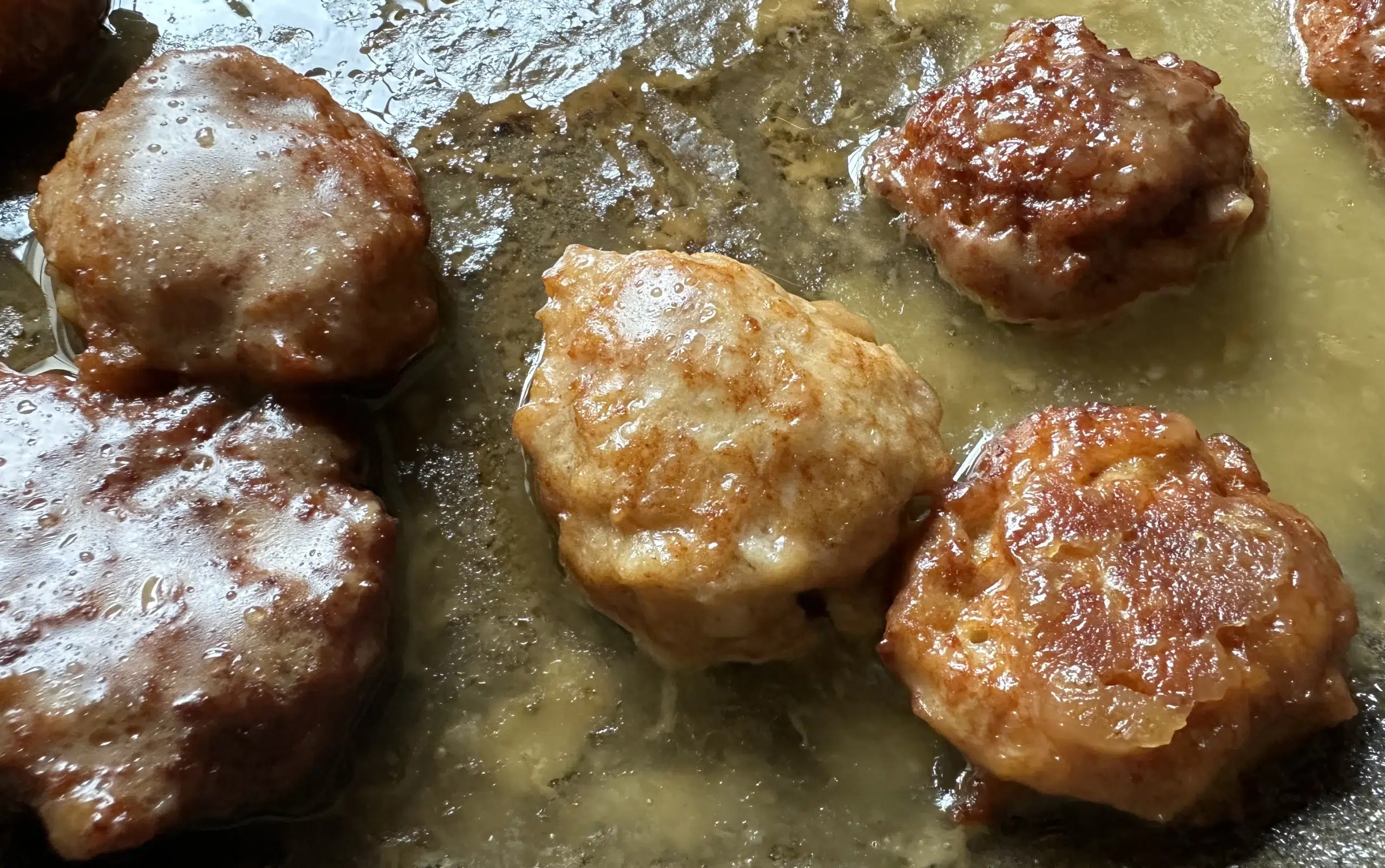 Adesso passiamo alla cottura delle polpette. Quindi mettiamo l’olio in una padella senza eccedere troppo. Fatto questo mettiao le polpette in padella, aggiungiamo il succo di un limone e un goccio d’acqua. Facciamo cuocere con un coperchio. Qualcheminuto da un lato e poi le giriamo.