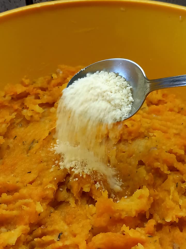 Se vi accorgete che è troppo morbido per una maggiore riuscita, fatelo freddare completamente poi affettatelo e mettetelo cosi di nuovo in forno: le fettine rimarranno integre in maniera perfetta. Se scegliete la cottura della zucca in padella salatela solamente all’ ultimo minuto e fate saltare la zucca a fiamma abbastanza viva di modo che l’ acqua di cui è composta asciughi . Come vedrete nella sequenza delle foto la zucca io l’ ho schiacciata con lo schiaccia patate..di modo che nel fare pressione per schiacciarla se c” è una parte di acqua questa fuoriesce .