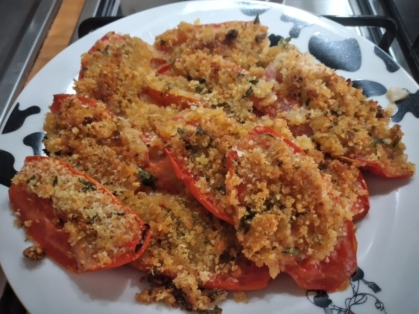 Pomodori gratinati al forno, un contorno semplice, saporito e perfetto per accompagnare secondi piatti di carne o pesce. I pomodori gratinati sono croccanti fuori e morbidi dentro, con un mix aromatico di pangrattato, formaggio grattugiato ed erbe fresche che esaltano il loro sapore naturale.
