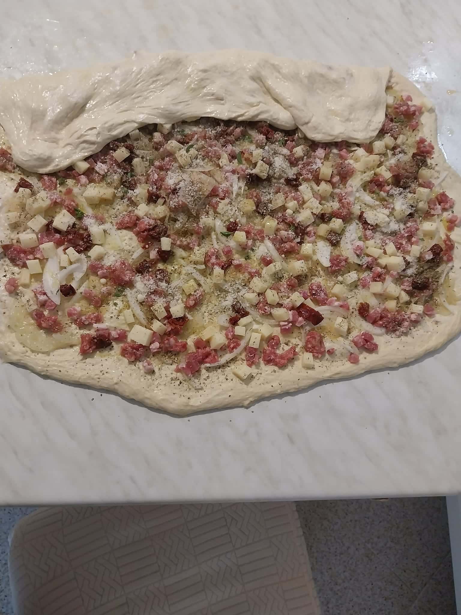 Dimenticate le lunghe lievitazioni da chimici. Qui si va sul pratico. Sciogliete il lievito in un po’ d’acqua tiepida. In una ciotola (o sulla spianatoia), unite la farina di grano duro, il lievito sciolto, un bel giro d’olio EVO e il sale. Impastate con energia. Dovete ottenere un panetto omogeneo, compatto ed elastico. La semola di grano duro darร all’impasto un colore dorato e una croccantezza unica.