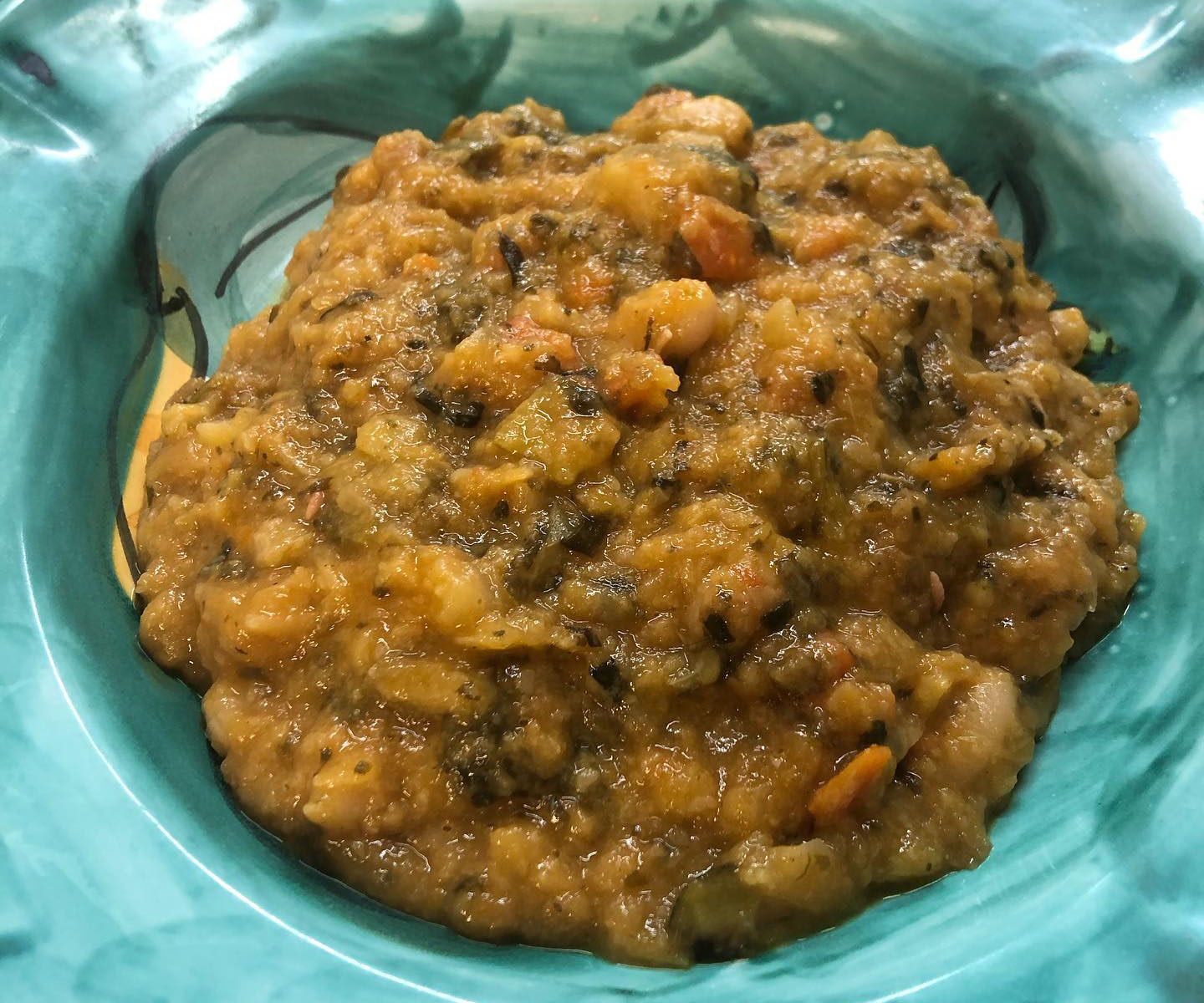 La ribollita ha bisogno di circa 2 ore per cuocersi e, se necessario, aggiungete dell’altro brodo vegetale. Quando sarà pronta e ben insaporita, versatela in un tegamino di terracotta sul cui fondo adagiate del pane duro, raffermo o ben bruscato. Infine, prima di servire, fate un giro d’olio evo, guarnite con delle foglie di alloro e una bella spolverata di pecorino. Buon appetito! Leggi anche: Zuppa di pancotto, quella originale del contadino. Ottima nelle giornate fredde