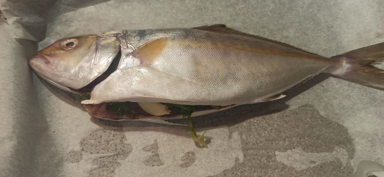Cuocete in forno caldo a 180° per trenta minuti. Sfornare la ricciola, servitela calda, accompagnata con i succhi rilasciati.