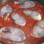Per preparare la ricciola alla pizzaiola, iniziate a lavare, pulire e dividere in tranci la ricciola, eliminando la testa e la coda.