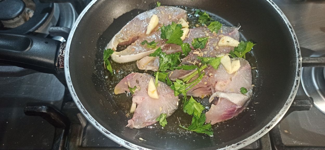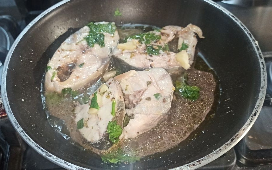 se l’avete acquistata a tranci, sicuramente salterete questa fase, oppure potete delegare il vostro pescivendolo di fiducia. Eliminate la testa e la coda, e dividete il corpo in fette spesse circa un centimetro e mezzo.
