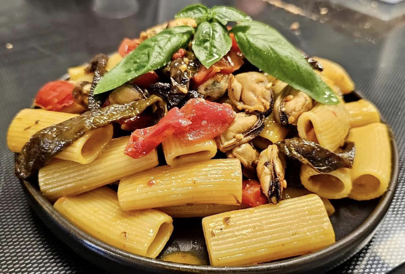 I Rigatoni alla Sommese con Peperoncini del Fiume, Cozze e Pomodorini è una ricetta combina il gusto piccante dei peperoncini del fiume con la freschezza delle cozze e la dolcezza dei pomodorini, creando un piatto di pasta delizioso e saporito. Ecco come prepararlo: