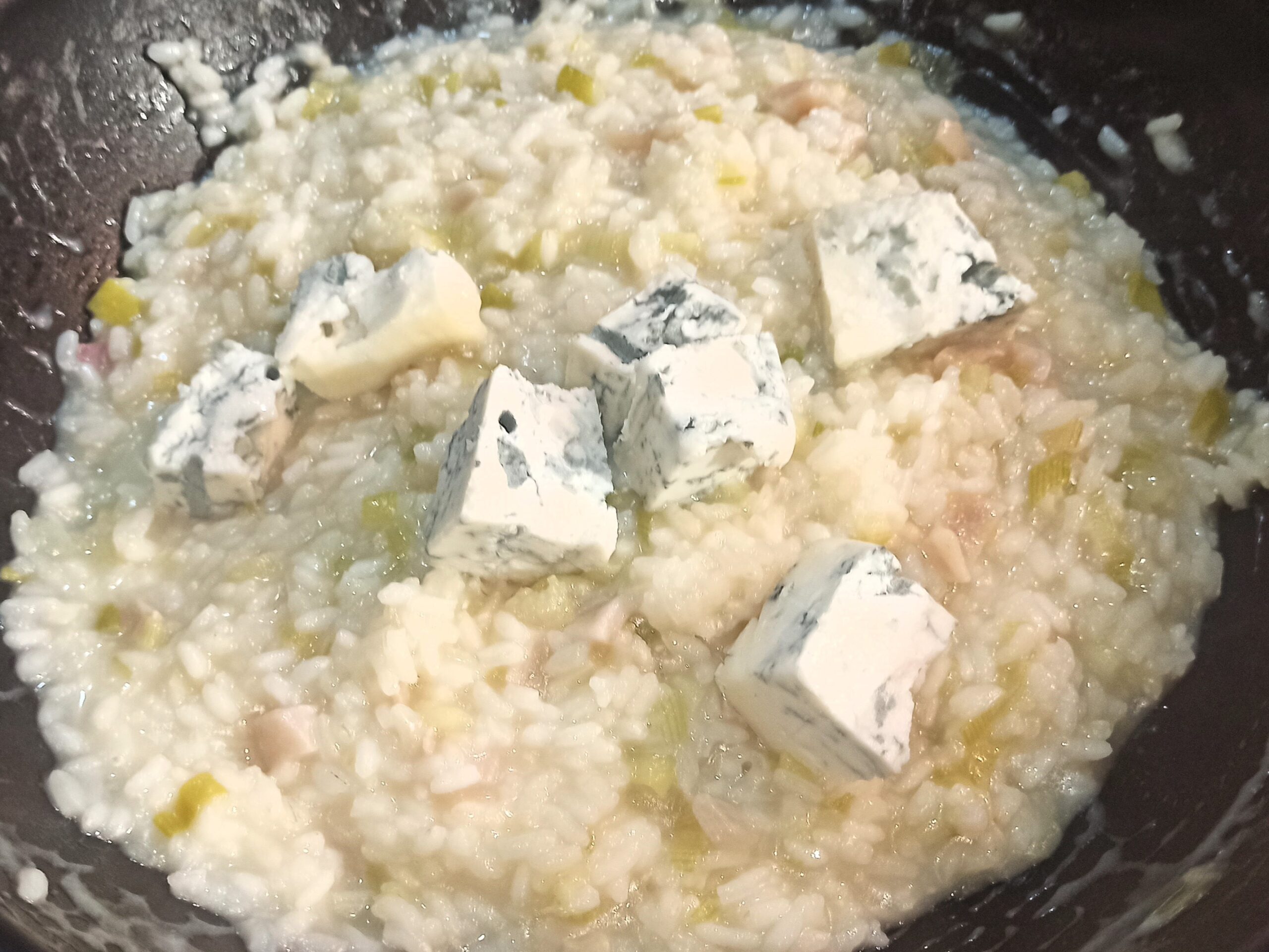 mescolate, e iniziate la cottura del riso, se occorre potete aggiungere un poco di brodo vegetale. Appena il riso sarà cotto, spegnete la fiamma, mantecate con il gorgonzola,