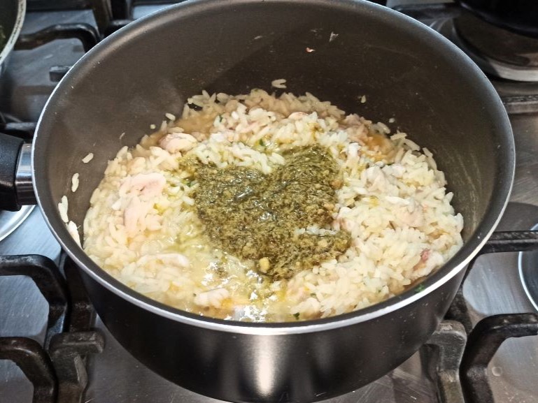Spegnete la fiamma, aggiungete la crema di prezzemolo,