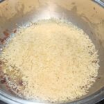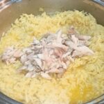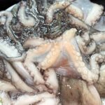 il polpo tagliato a pezzetti, poi metteteli da parte. Nella stessa pentola, fate rosolare i gamberi, i filetti di triglia e ricciola, mettete da parte anche questi. Filtrate il brodo preparato con gli scarti del pesce, unite anche il liquido recuperato dall’apertura dei frutti di mare. Nella stessa pentola, mettete il riso, fatelo tostare,