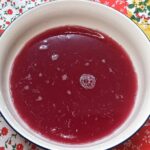 Per preparare il risotto con radicchio e melagrana, iniziate ad estrarre i chicchi dalla melagrana. Conservatene qualcuno intero per guarnire il piatto, mentre, con l’aiuto di un passaverdure, estraete il succo dai chicchi rimanenti.
