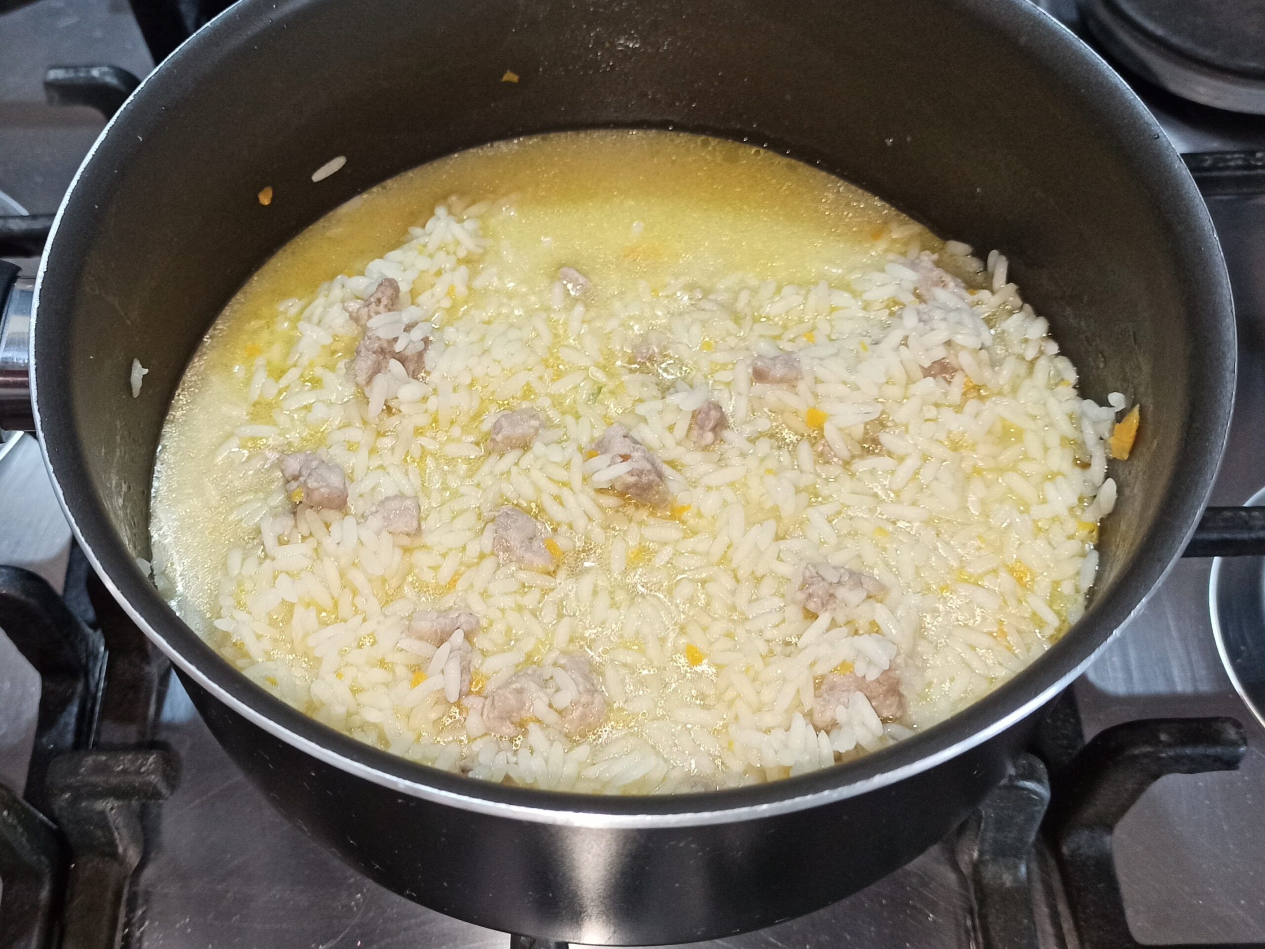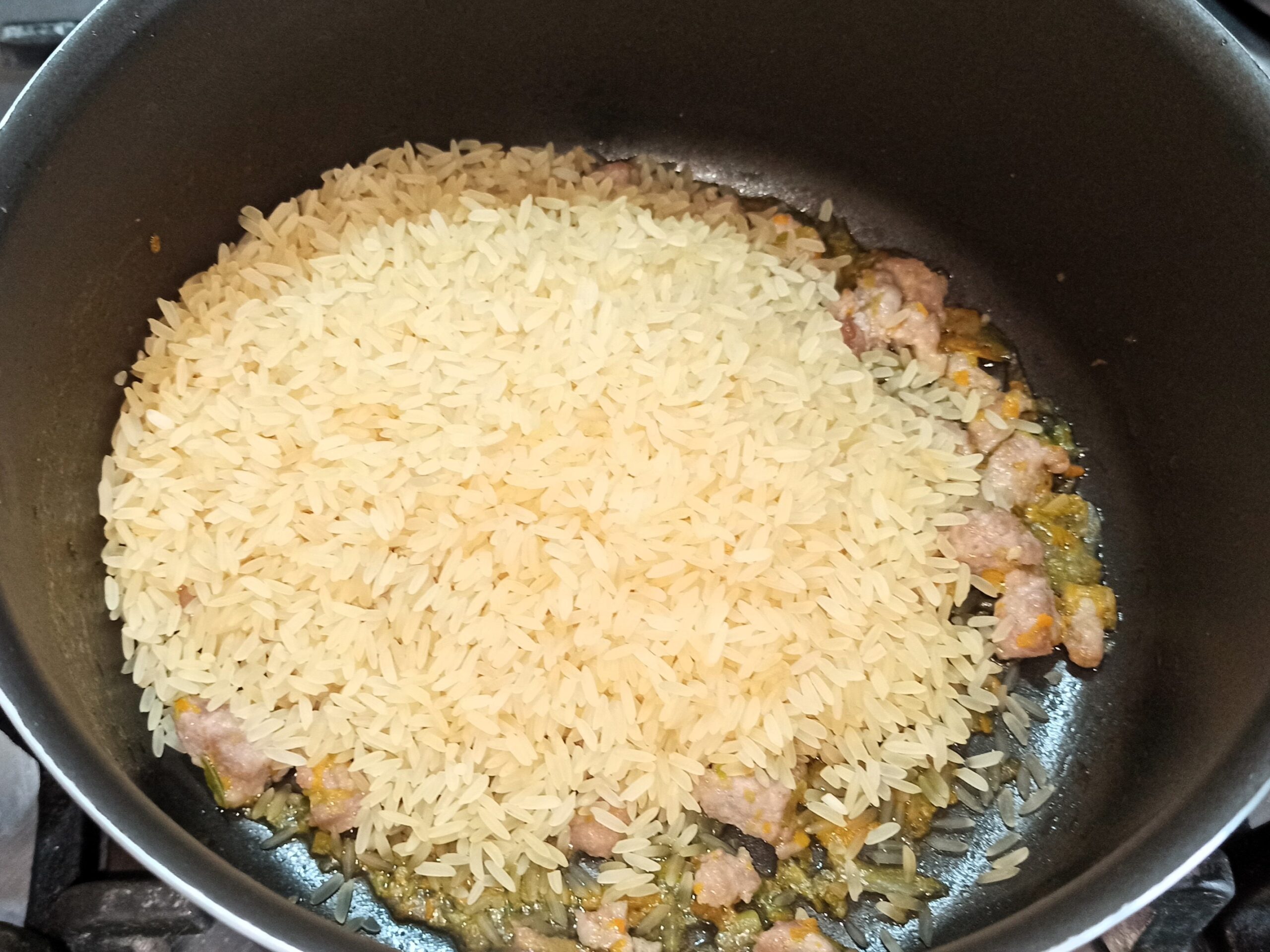 poi sfumate con il vino bianco. Appena l’alcol sarà evaporato, iniziate la cottura del riso, aggiungendo il brodo vegetale a bisogno.