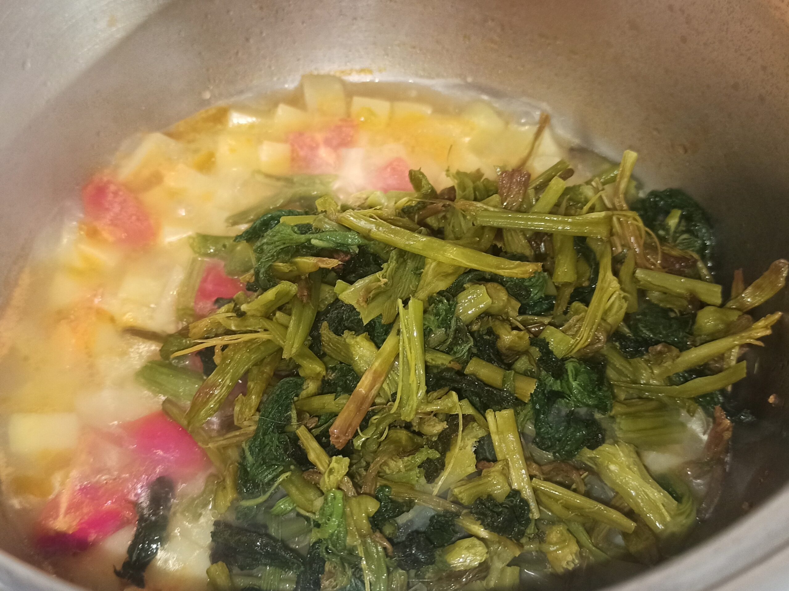 Fate cuocere per qualche minuto, poi aggiungete anche i tenerumi, regolate di sale e fate cuocere per quindici minuti.