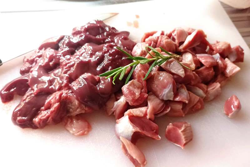 - 300 g di fegatini e ventrigli (magoncini) di pollo