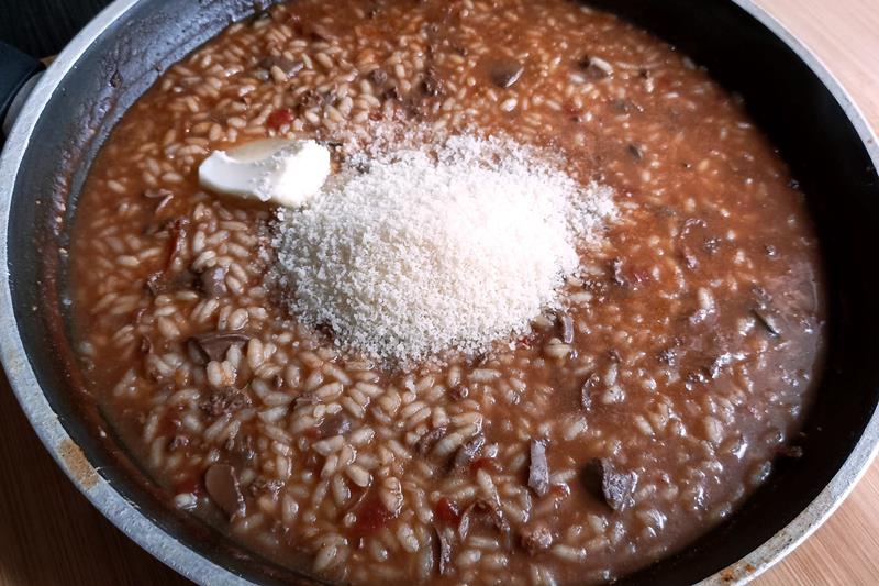 una volta cotto, eliminate il rosmarino, e mantecate il risotto con il parmigiano ed una noce di burro.
